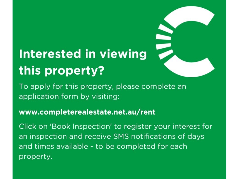 MUST APPLY PRIOR TO INSPECTION Visit www.completerealestate.net.au/rent. Select property, hit apply. This two-bedroom unit is perfectly located within walking distance to the centre of town, and is close to Reidy Park Primary School, Tenison Woods College and Hastings Cunningham Reserve. - Two bedrooms, one with built-in-robes. - Large living area with reverse cycle air conditioning. - Renovated kitchen with electric cooking. - Updated bathroom with walk-in shower, bath and vanity. Separate toilet. - Garage under main roof. - No Pets. Tenant to pay 1/2 share of water usage charge. Tenant to pay 100% of water supply charge. Tenant to arrange electricity connection.