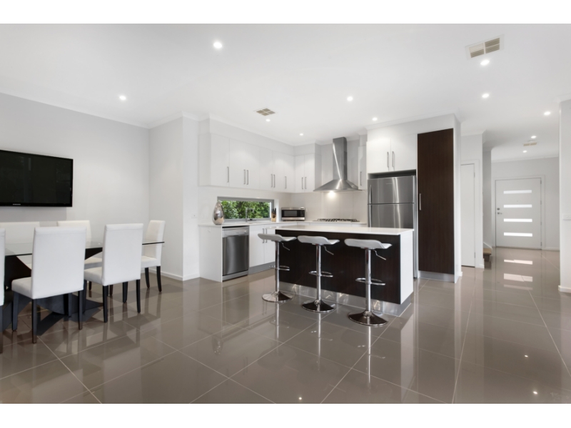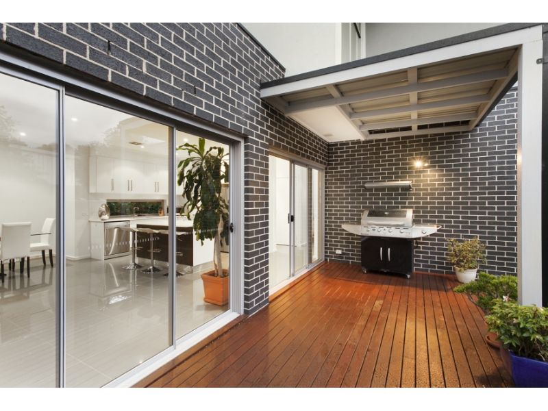 Prestigious double storey town residence combining cutting edge architecture with style and superior finishes. Moments to the beach and with shops, station and schools within a short stroll- this Ratcliffe built luxury home includes 3 bedrooms + study 2.5 bath enjoying a north facing formal lounge with private side courtyard, open plan entertaining with stacked sliders to covered Merbau deck, sleek stone kitchen with 900 mm Technika appliances and dishwasher, 3 generous living zones, high ceilings, extensive porcelain, ducted refrigerated cooling and heating, landscaped, water tank, feature timber double auto garage with internal access and rear roller door. With too many features to mention, this is a must inspect, you'll not be disappointed. This is low maintenance, Bayside living at its best.