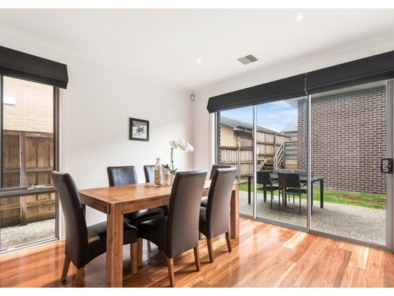 This is your opportunity to secure an enviable, low maintenance life within the thriving Harcrest Estate. Enjoying a highly sought position at the entry of the picturesque estate, is an attractive home that is well-appointed and offers light filled spaces throughout. On the entry level, you’ll be pleased to find a generous living area with an adjoining dining space; this also has potential to be used as a study area dependant on your needs. From here, stunning Spotted Gum timber floors flow to an open plan area boasting a combined family/meals area and a well-equipped hostess kitchen where modern cabinetry is complemented by stone benchtops, a glass splashback and quality stainless steel Blanco and SMEG appliances. This area opens to a substantial backyard. Exposed aggregate has been used to create an attractive open-air patio that is surrounded by a spacious grassed area; the space is ideal for entertaining family and friends, and also makes a safe playspace for children and animals alike. From here, you also have direct access to a double lock up garage with remote entry. On the upper level there are three sizeable robed bedrooms. The master has views across the estate and offers a private ensuite, whilst the remaining bedrooms share use of a central bathroom with a separate shower and a deep bath. A number of additions will add to the homes appeal. They include gas ducted heating and ducted refrigerated air-conditioning, high ceilings, quality blinds, a powder room and a laundry, a water tank, solar panels plus an alarm and CCTV cameras that have direct links to mobile phones. Harcrest Estate is well-equipped with amenities that include a supermarket, cafes and specialty stores, a central playground and a number of open green spaces; there is a fabulous community feel and a sense of pride that goes with living here. Enhancing the immediate surrounds are local buses with rail links, a number of quality educational facilities that include Swinburne University, Waverley Christian College and the Knox School, plus Westfield Knox and its popular Ozone entertainment precinct. Professionals Wantirna Knox invite you to REGISTER YOUR INTEREST by clicking “Get in touch” and entering your details to receive updates and inspection times for this property. Our team of local property experts can also provide you with a professional sales or rental appraisal for your property. Disclaimer. All information contained herein is gathered from sources we believe to be reliable. We cannot however guarantee its accuracy and interested parties should make and rely on their own enquiries. Inspection times and property availability are subject to change without notice. Photo identification required at inspections.