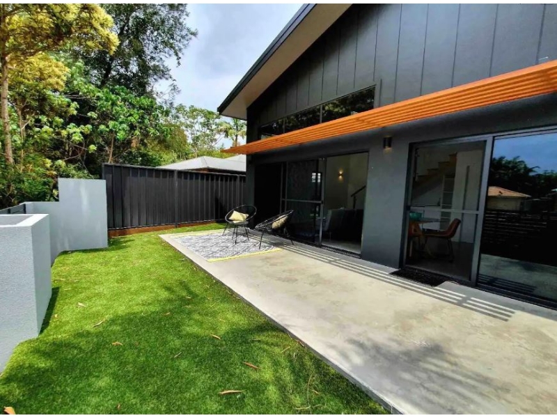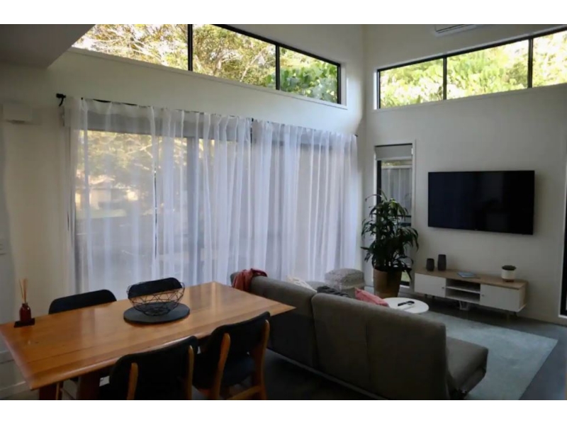 Located in a quiet court close to popular local shops, less than 10 minutes to Byron Bay's town centre, and an easy walk or bike ride to Tallow Beach, this luxe 1 bedroom apartment will impress! A separate entrance leads you into the front yard of this contemporary abode. As you step inside you will be greeted by a stunning open plan living, kitchen and dining with soaring high ceilings, polished concrete floors and air-conditioning. The modern kitchen is chic with dark cupboards, Caesarstone benchtops and stainless-steel appliances including a dishwasher and an electric oven and cooktop. Downstairs also features a stylish and modern bathroom with large walk-in shower, plus a laundry and storage space under the stairs, which will be covered by doors. The second level comprises a generous-sized bedroom which has built-in robes with large drawers, luxe carpet, ceiling fan and a lovely outlook over the trees and distant hills. The yard is fully fenced and low maintenance with quality synthetic turf and a fabulous courtyard. Planting of garden is currently being completed. The property is nicely elevated and captures the gentle sea breezes. LOCATION - Only 100mtrs from Baz & Shaz's awesome Fruit & Veg/General Store - Only 5min walk to local Suffolk Park shops inc pub, chemist, delicious bakery, pizza shop and supermarket - Only 10min walk to local dog-friendly beach - Local park at the end of the street LEASE DETAILS - Available 9th March - Fully Furnished - 6 to 12 month lease - Electricity, water & access to WIFI included - Pet considered on application - Property is non-smoking inside and also outside in courtyard area. This applies to tenants and their guests. Please submit an online enquiry to register and be notified about upcoming inspection times. Potential tenants are required to physically inspect the property or have someone view on their behalf. Applications are completed online and a link will be sent after inspecting the property.