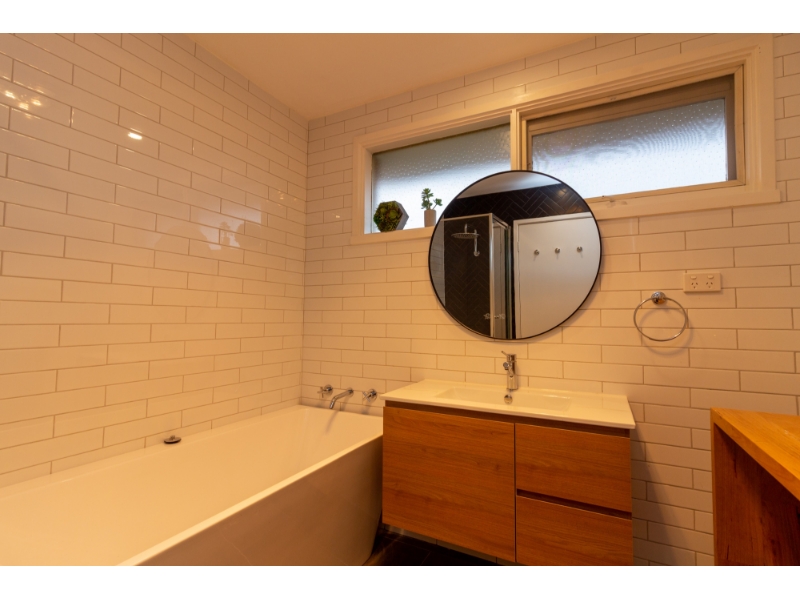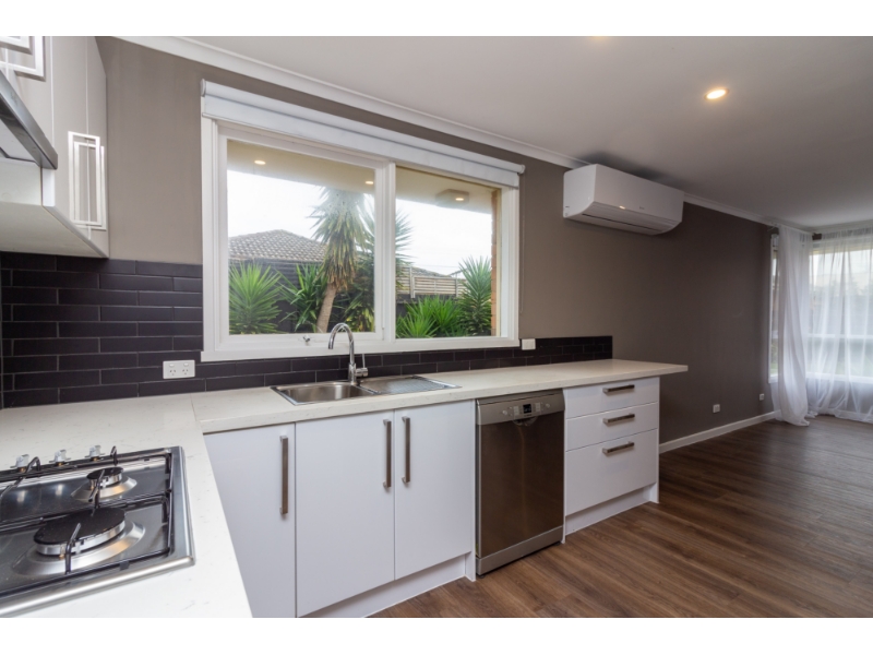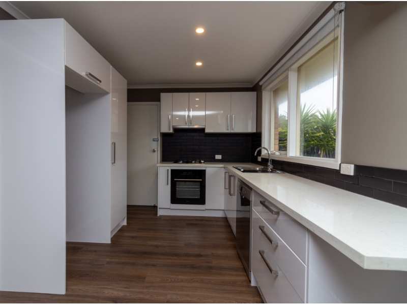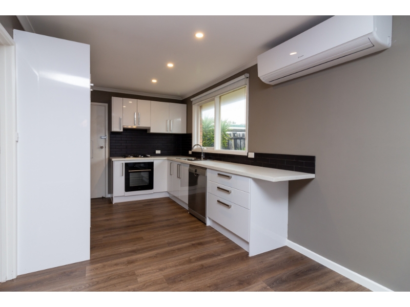 Walk to beach, shops & station from this beautifully updated two-bedroom freestanding unit offering low-maintenance coastal living. Step inside to discover a light-filled open plan living and dining area, complete with split system heating/cooling plus low maintenance timber floating floors throughout. The kitchen boasts ample storage space and quality stainless steel appliances, including gas cooktop, electric oven, and dishwasher. The central bathroom features stunning floor-to-ceiling tiles, a separate bath and shower, and a sleek, contemporary finish. Laundry facilities are located here, with storage cupboards and bench suited for a front loader washing machine. The separate toilet is located off the central private hallway. Enjoy outdoor living in the sunny private courtyard surrounded by well-maintained lawns and shrubs.. A single lock-up garage provides secure off-street parking.