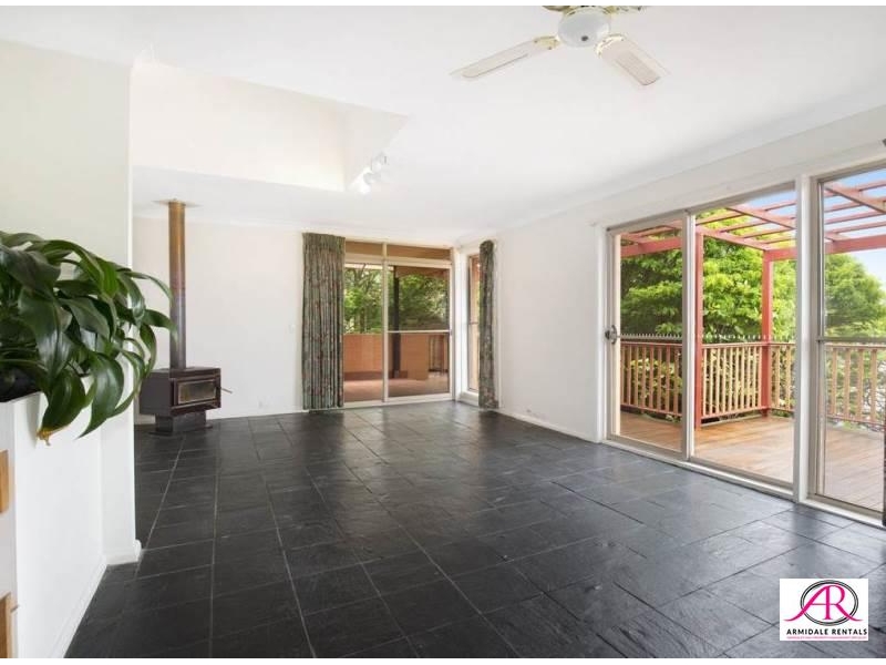 Positioned on a corner block and designed over three levels, this spacious family home offers space and privacy while also offerring an extensive garden area. A three level home that offers a main bedroom + ensuite and a living area with a large open fireplace. Upstairs is spacious with an open plan kitchen and family area. The kitchen includes a gas cooktop, corner pantry and slate tile flooring. The living room is warmed by a freestanding wood fire and leads directly to a covered veranda. Extensive views to the East across the treetops. The lower level has three good size bedrooms plus a three-way bathroom is ideal for the larger family. The laundry provides direct access to the rear garden. A detached double garage with great storage space and an additional rear roller door for vehicle access to the yard. Features include - Four bedrooms. Main inc. ensuite - Open plan kitchen with slate flooring - Separate living room inc feature open fireplace - NBN, underfloor heating, wood fire + open fireplace - Double detached garage with rear yard access - Loads of storage options - Garden shed