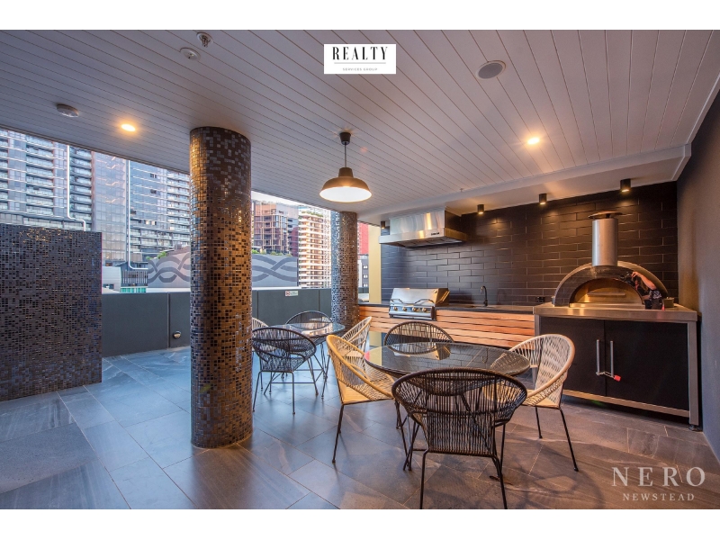Newstead – the embodiment of the old meeting the new. Ranked by Lonely Planet as one of Australia’s coolest residential suburbs, Newstead is fast becoming one of Brisbane’s most liveable areas. Brimming with historical charm and bustling with fresh, upmarket design appeal, the area hosts a rich array of lifestyle attractions. Situated on Doggett Street, Nero is just a stone’s throw from Gasworks Plaza, James Street shops, transport links and all the local amenities. • Newstead Brewing Co – 1 minute walk • Gasworks Precinct – 1 minute walk • The Triffid (live music venue) – 4 minute walk • Green Beacon Brewing Co – 4 minute walk • Emporium (retail precinct) – 6 minute walk • James Street Initiative (retail) – 3 minute walk • Waterfront Park – 4 minute walk • Teneriffe Ferry Terminal – 6 minute walk Some of the apartment features include: • Two bedrooms with high end built in robes • 2 bathrooms with one ensuite • One secure car parking space • Ducted air-conditioning throughout • ILVE European appliances and gas stove • Beautiful tiled flooring • Ceiling fans • Luxury fixtures and fittings • A lovely balcony The building features include: • Cantilevered lap pool • Sauna and steam rooms • Sundeck with outlook • Fully equipped gym • Dining areas • Teppanyaki bar & kitchenette facilities • Barbecue & pizza oven • Residents’ lounge with fireplace • Residents’ bar • Onsite management