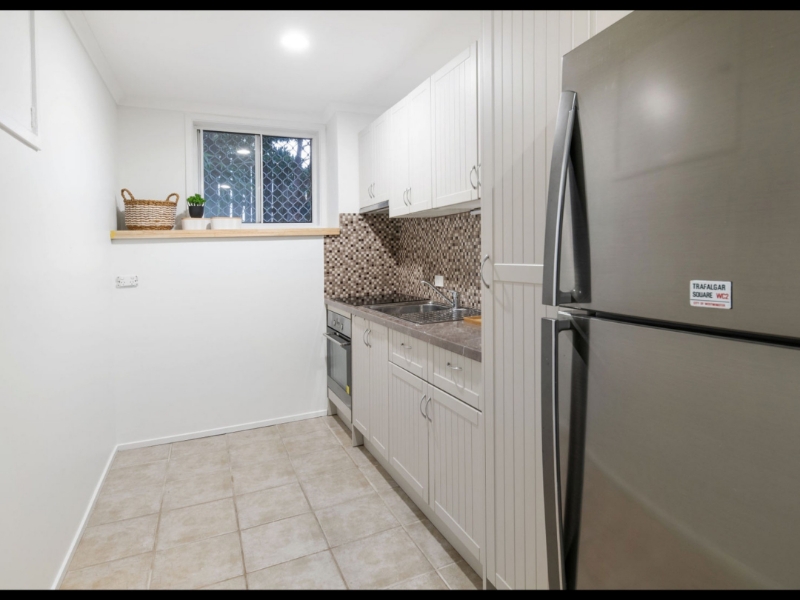 This Granny flat is self contained - living room, bedroom with ensuite and air con. It has fully functional kitchen with washing machine installed It has its own entrance and carparking for a car (open air). Light and spacious. Electricity and water included. Email us to secure a viewing - please do not call the office.
