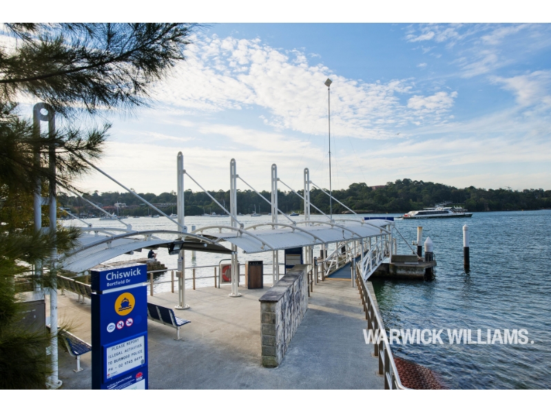 Situated in an enviable position at tip of the Chiswick peninsula, this top floor light-filled two-bedroom unit enjoys a breathtaking, panoramic vista across Five Dock Bay, city skyline and top of the Harbour Bridge. Both the master bedroom and large living/dining space have direct access to a full-width, private balcony that's perfect for relaxing, entertaining or simply taking in those incredible views. Classy full sized gourmet gas kitchen with dishwasher and ample cupboards space. Two bedrooms both with built-ins and carpet, master with air-conditioning. Luxurious bathroom featuring dual sinks, separate shower unit, and Italian tiling. Internal laundry with storage cupboards. Floorboards, air-conditioning, fully renovated, creating an indulgent sense of space, with luxury features throughout. Security building, lock up garage for one. With Chiswick ferry wharf only 140m away and 100m to shops and eateries, the apartment delivers great access to CBD transport and the Chiswick village hub. 1.2km to Abbotsford Public School. 150m to CBD bus routes. Precautions have been taken to establish accuracy of the information, but it does not constitute any representation by the landlord or real estate agent. We cannot guarantee its accuracy, and we accept no responsibility and disclaim all liability in respect to any errors, omissions, inaccuracies or misstatements in this document. Prospective tenants are advised to carry out their own investigations and rely on their own inquiries.