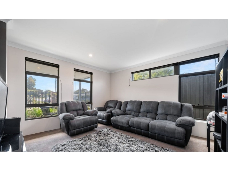 Don't delay in viewing this low maintenance living, perfect lock-n-leave home. Close to parklands, local shops, easy access to freeway, this property would suit FIFO workers or a small family. 3 Bedrooms Master has His-n-Hers walk-in robes; Minor bedrooms have built-in robes 2 Bathrooms (Ensuite with double shower) Kitchen with plenty of cupboards Open plan living/dining/kitchen Separate sunken theatre Reverse cycle air conditioning Paved alfresco for entertaining area Low maintenance garden Reticulation to the front gardens Rear access to double garage Sorry, no pets Applications processed after viewing, please do not apply prior to viewing Please register for the viewing online to avoid delays on the day Please ensure you follow the State Covid guidelines DISCLAIMER: Whilst every care has been taken with the preparation of the particulars contained in the information supplied, believed to be correct, neither the Agent nor the client nor servants of both, guarantee their accuracy. Interested persons are advised to make their own enquiries and satisfy themselves in all respects. The particulars contained are not intended to form part of any contract.