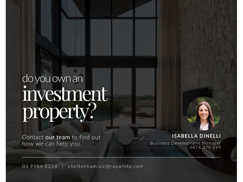 BOOK AN INSPECTION TODAY, IT MAY BE GONE TOMORROW - PHOTO ID REQUIRED AT INSPECTIONS! *This property comes semi-furnished* This bright and spacious apartment has loads to offer including; • Two bedrooms with built in robes • Large open plan living area • Stylish kitchen with plenty of storage and dishwasher • Great sized balcony perfect for entertaining • Central bathroom with bath & shower • Split system heating & cooling • Secured single carspace • Walking distance to Cheltenham shopping strip VIRTUAL TOUR LINK: https://new.8prop.com/model/hHSMb8QnL7T PHOTO ID REQUIRED AT ALL OPEN HOMES. Please note: Ray White Cheltenham has exclusive leasing rights to this property. We do not advertise on Gumtree, Facebook Marketplace or any other social media platforms. Please be aware of scammers - 2Apply application codes and links will be provided upon physical inspection of the property only.