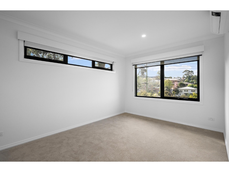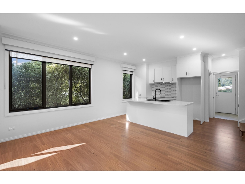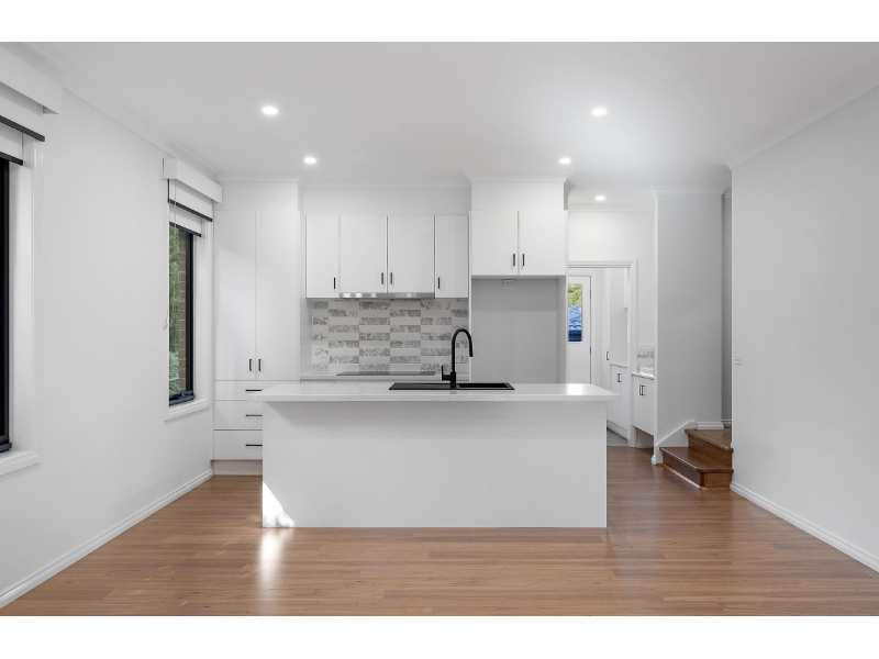 Experience modern living at its finest in this spacious three-bedroom townhouse, designed for those who value quality and convenience. Nestled in a peaceful court in the heart of Mooroolbark, this home is perfect for families or professionals seeking a stylish, low-maintenance lifestyle. The townhouse boasts three generously sized bedrooms, each with built-in robes, including a master suite that features an ensuite with a double shower. A family bathroom, complete with designer fittings and a luxurious bath, offers added comfort, while the powder room and three toilets make this home as functional as it is beautiful. The sleek, contemporary kitchen is the heart of the home, with stone benchtops, soft-close cabinetry, a tiled splashback, and high-end stainless steel appliances, including an electric cooktop, electric oven, and dishwasher. The kitchen flows seamlessly into a large, open-plan living and dining area, perfect for entertaining family and friends. Throughout the home, you'll find split system heating and cooling in every room, ensuring year-round comfort. Double-glazed windows provide both energy efficiency and peace and quiet, while a slimline water tank adds to the home’s environmentally friendly features. Outside, enjoy a small covered deck, ideal for relaxing or enjoying meals al fresco. The property also includes a single lock-up garage with remote access, along with additional parking on the private driveway. Conveniently located just minutes from Mooroolbark and Lilydale stations, as well as Chirnside Park Shopping Centre, this home is positioned for ultimate convenience.