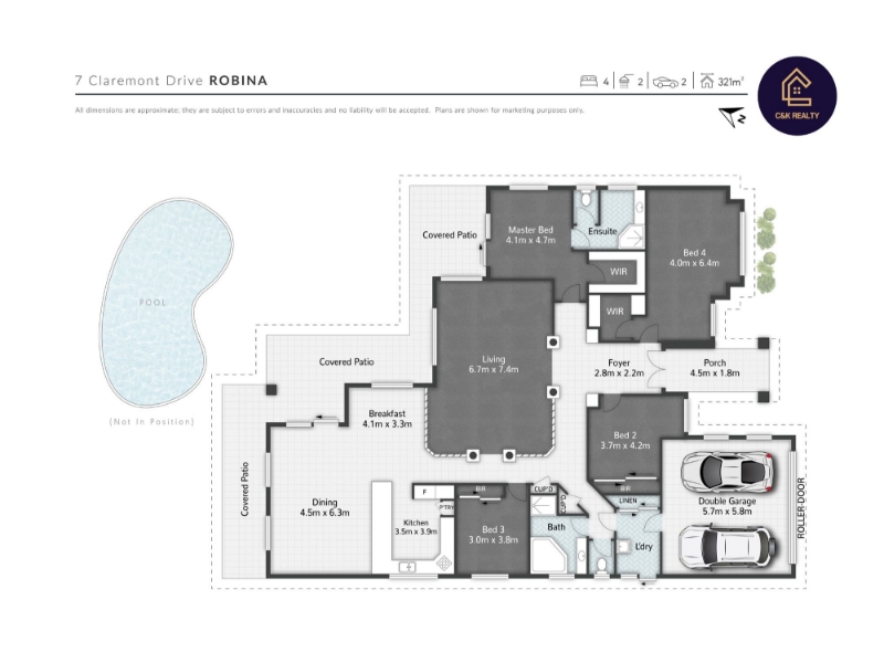 Looking for the perfect rental home in a sought-after location? This spacious 4-bedroom home backs onto Robina Woods Golf Course and offers a peaceful lifestyle with easy access to everything you need. Located within walking distance of Bond University and just a short drive to Robina Town Centre, schools, public transport, and parks, this property is ideal for families or professionals looking for convenience and comfort. Property Features: * 4 spacious bedrooms – Master with ensuite and walk-in robe * 2 bathrooms * Multiple living areas for flexible living and entertaining * Modern open-plan kitchen with plenty of storage * Separate dining area * Double lock-up garage with internal access * Low-maintenance backyard with a swimming pool * Solar panels to help reduce energy costs * Plenty of room for extra parking (caravan, trailer, or boat) The outdoor entertainment area overlooks a fenced swimming pool and lush greenery, creating the perfect space to relax and enjoy the Gold Coast lifestyle. **Prime Location:** * Walk to Bond University * Close to Robina Town Centre, schools, and Robina Train Station * Minutes from parks, cafes, and outdoor recreation areas * Short drive to CBUS Stadium – perfect for sports fans! This is a rare rental opportunity in one of Robina’s most desirable locations. Don’t miss out – contact us today to arrange an inspection! Contact Charley Kim at 0435 123 612 to express your interest and join us for the open house. Applications should be submitted via 2Apply and are warmly welcomed and encouraged prior to inspections. Please note: The information provided herein is sourced from what we deem reliable channels. Nonetheless, we cannot assure its absolute accuracy, and individuals interested are encouraged to conduct their own investigations. C&K REALTY assumes no responsibility for providing prospective tenants with cancellation notices or other pertinent information if they are not registered to attend.