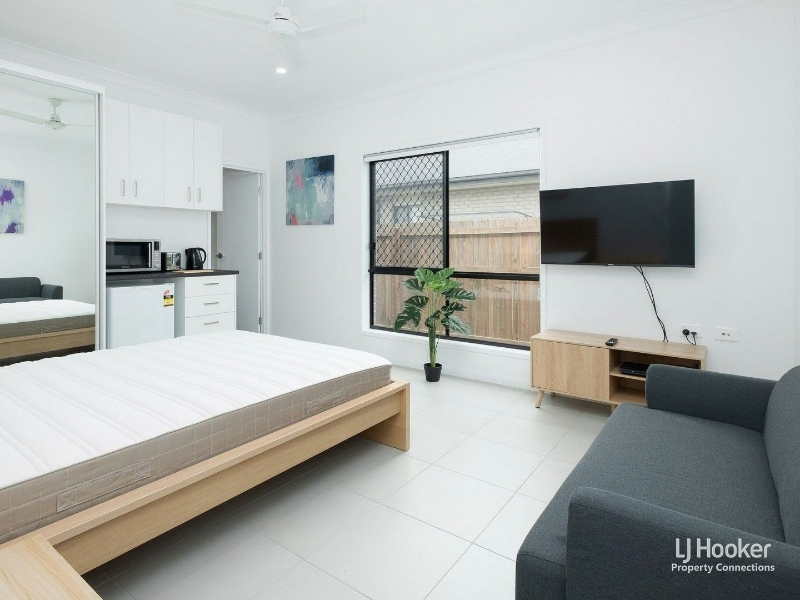Looking for a modern room to rent in an established area? This one bedroom with private bathroom is for rent in Murrumba Downs. Large sized room similar to a studio with a sitting area and built in area for small appliances. - This room is fully furnished. Air conditioning, ceiling fan and mirrored wardrobe feature in the room as well. There is a communal lounge, dining kitchen and a laundry room. Bright modern room that includes; TV, DVD player, coffee table, 2 seater lounge, microwave, bar fridge, kettle, toaster, crockery and cutlery plus queens bed, mattress and side table. Utilities and Services are provided too! - Water Included. - Power Included. - Cleaner attends weekly to take care of the common areas. - Lawn Maintenance Included. - Wifi Included Property is not suitable for pets. Photos indicative.