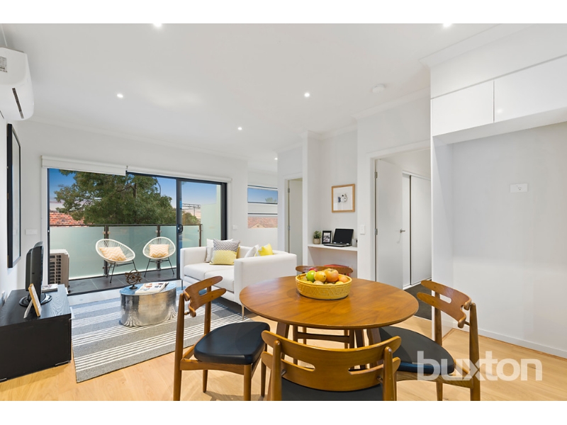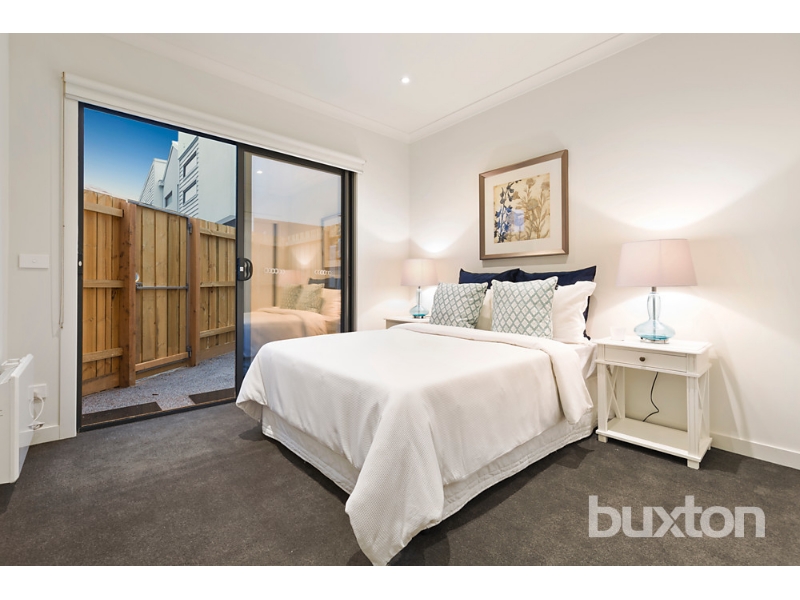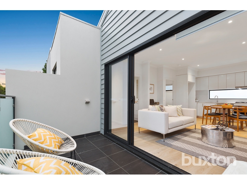 This charming freshly painted two-bedroom, two-bathroom townhouse offers a perfect blend of comfort and modern living. On the ground floor, you’ll find a welcoming entrance hall, a European-style laundry with a convenient linen press. The master bedroom is a private retreat, complete with a built-in robe, ensuite with a separate shower, and its own courtyard for added tranquillity. The single automatic garage provides secure and easy access. Upstairs, the open-plan living and dining area is spacious and light-filled, extending to a North-facing balcony with privacy screens, perfect for enjoying the outdoors in peace. The kitchen is equipped with high-end Smeg stainless steel appliances, including a gas cooktop, dishwasher, and sleek CaesarStone benchtops. The main bathroom is well-appointed with a shower and toilet, while the second bedroom also features built-in robes. Additional comforts include panel heating in the bedrooms and reverse-cycle heating and cooling in the lounge room for year-round climate control. With easy access via Barry Street, this townhouse is ideally located just a short stroll from local shops, cafes, and the station—perfect for a convenient and relaxed lifestyle. *Please note that inspection times are subject to change and cancellation without notice. Please ensure you register for the upcoming inspection to ensure you are kept up to date with any changes made to this property*