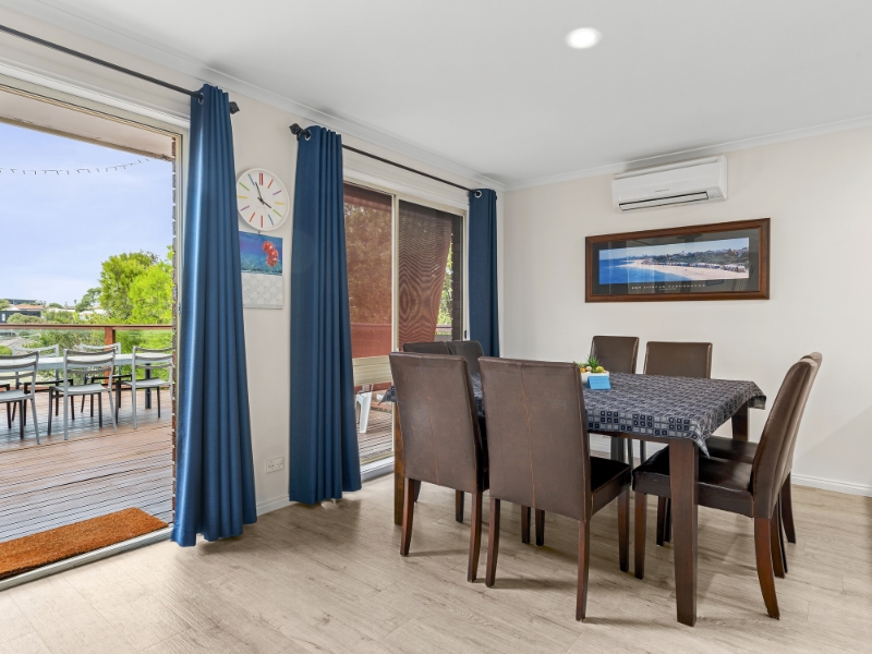 SHORT TERM LEASE - available until 1st December 4 bedrooms 2 bathrooms Kitchen with electric cooking & dishwasher Gas heater, split system heating & air-conditioning Large outside entertainment area Secure parking Welcome to your ideal coastal retreat! Located in a quiet, family-friendly pocket of Ocean Grove on sought-after Barramundi Crescent, this beautifully presented, fully furnished home is perfect for families or those looking for a relaxed seaside lifestyle with space to move. Upstairs level consists of living area flowing into the kitchen with electric cooking & dishwasher. Separate dining area opens up large elevated deck ideal for BBQ nights with friends. Three bedrooms located of the hallway. Mater bedroom is generous size with build in robe and beautifully renovated ensuite. Further two bedrooms are sharing main bathroom with shower and bath, as well as separate powder room. Downstairs level consists of open plan living area/fourth bedroom with separate powder room for convenience. There is also direct access to fully fenced backyard as well as oversized lock-up garage. With 3 split system Air Conditioners, Fans, Gas Heating and a cozy Gas Log fire, this family home is well equipped for both summer and winter. Additional features include separate laundry, large fully fenced backyard including undercover area with outdoor setting & 3.2 kw solar system. Located just a short drive from Ocean Grove’s beaches, schools, parks, and shopping precincts, this home offers the perfect balance of tranquility and convenience.