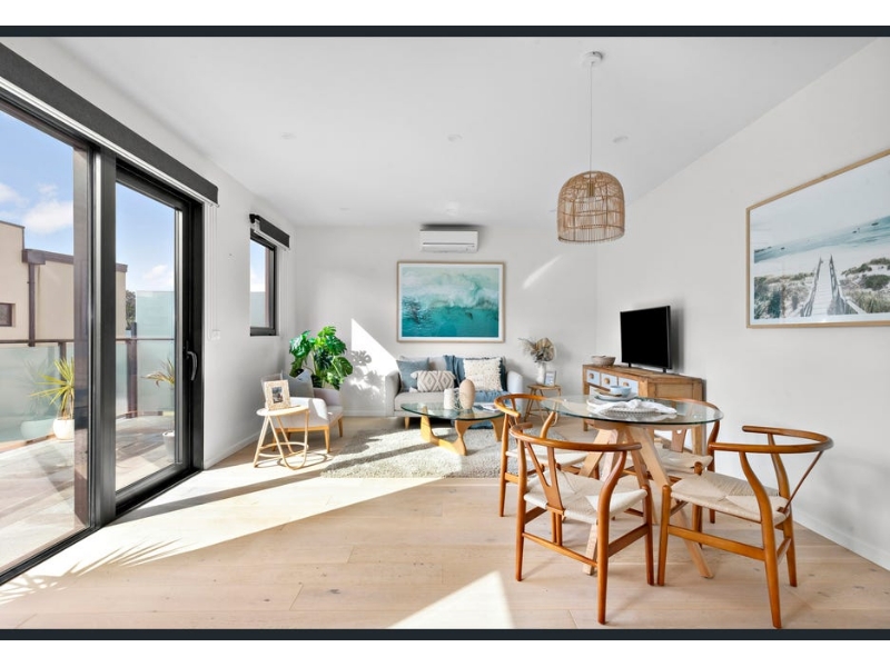Step across the road to the pristine sand from this stunning 3-bedroom, 2.5-bathroom contemporary home, and get ready to enjoy relaxed coastal living. Nestled between the beach and Kananook Creek's leafy tranquillity, enjoy morning coffee on your sun-drenched north-facing balcony and a leisurely stroll to Seaford's vibrant cafe scene. This quiet rear sanctuary features a master ensuite retreat with its own private balcony, while both ground-floor bedrooms share a modern bathroom, one opening to a peaceful courtyard. The gourmet kitchen will delight with its premium appliances and stone benchtops, flowing to stylish open-plan living with an entertaining balcony. Beautiful coastal timber flooring and carpet feature throughout, while individual split-systems and double-glazing ensure comfort in every room. Further enhanced by rain shower bathrooms plus a guest powder room, a double auto garage with internal entry and visitor parking – this low-maintenance home leaves nothing more to do than hit the sand and enjoy this prime beachside location. With Woolworths just 400 metres away and the station, RF Milnes Reserve and vibrant Seaford Village within walking distance, the daily convenience perfectly complements this coastal haven!