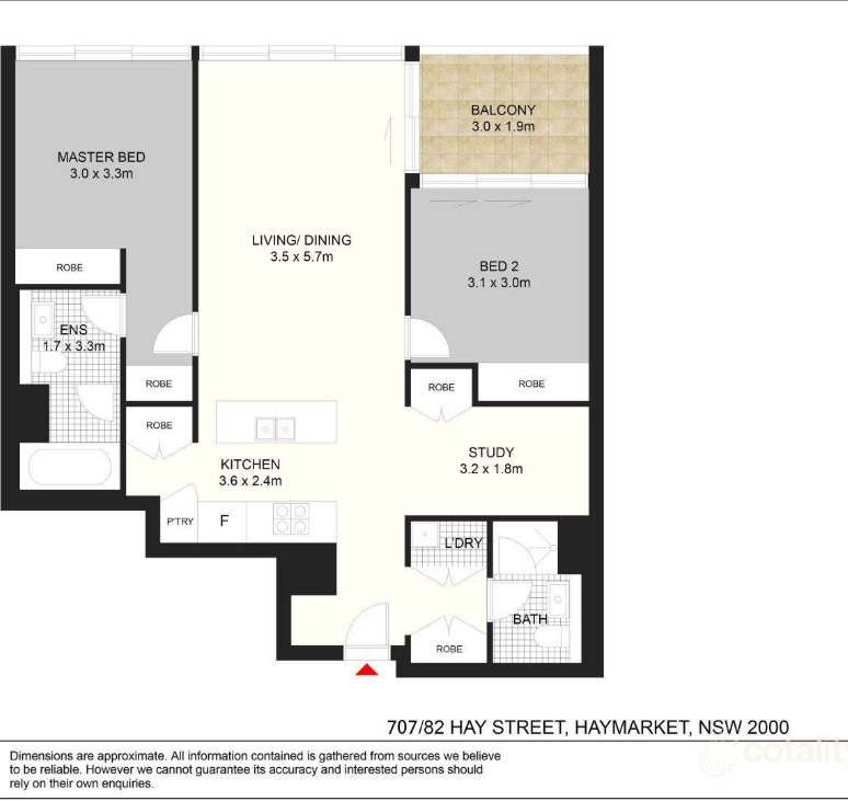 Modern Two-Bedroom + Study Apartment for rent in Prime Haymarket Location.
