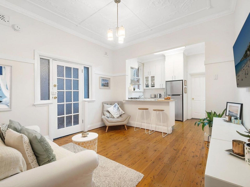 One of only four private residences in a converted Federation residence, this boutique apartment combines classic period architecture with modern comforts to create a charming low-maintenance home. With its own private entry and rear access to a lush common garden giving it a cottage-like feel, the two-bedroom apartment is tucked away in a leafy cul-de-sac between the lifestyle hubs of Coogee Beach and The Spot. Bright and airy interiors are wrapped in windows on three sides with high ornate ceilings and polished hardwood floors creating a welcoming feel while its location around the corner from Baker Park is 550m to Coogee Public School and within easy reach of Randwick town centre, the hospital precinct and UNSW. - Open plan living and dining, gas heating bayonet - Modern gas kitchen, granite benchtops, breakfast bar - Two double bedrooms, plantation shutters, ornate ceilings - Sunny king-sized main bedroom with built-in robes - Second bed at the rear overlooks the lush shared garden - Renovated bathroom with a frameless glass shower - Intimate block of 4 with a private entry, shared storage - Leafy shared garden with a lush lawn and veggie patch - Leafy street with no through traffic, plentiful parking - Pets considered by application
