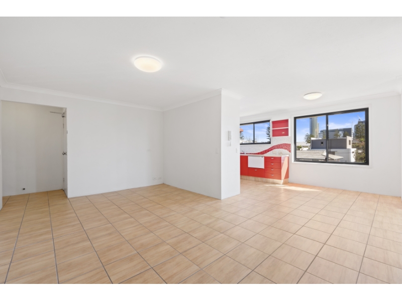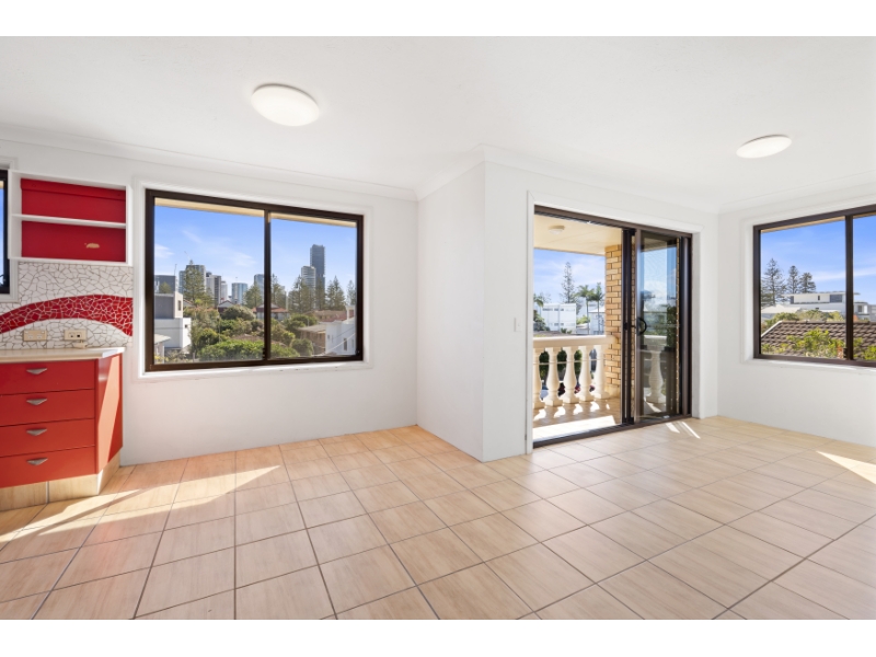 Put this on your must-inspect list. Beautiful Broadbeach skyline views, light & breezy large two-bedroom apartment with a study or 3rd bedroom. Only a 200m stroll to the beach and shops. Situated on the top floor of a 3-storey walk-up in a small block of only 8. Property Features include; * 2 bedrooms (two with built-ins) with ceiling fans * 3rd bedroom without built-ins (sliding door to be installed to close off the bedroom) * One bathroom * Separate toilet * Separate laundry * Spacious living with separate dining area * Modern kitchen with stainless appliances * Balcony with skyline views * Underground lockup garage * In-ground shared pool **MORE PHOTOS TO COME!** TO BOOK AN INSPECTION: Please click the "Book an inspection" or the "Request an inspection" just below. Please Note: this is done on Realestate.com If you cannot secure an inspection time, this may mean, the open house times are completely booked. You will be notified if a future open house becomes available. PLEASE NOTE: If you do not register for inspections, we cannot notify you of time changes or cancellations to inspections.