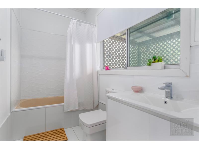 Upon entering you will be welcomed into the open plan lounge and dining area, complete with split system air conditioning and fireplace for year round comfort. All family bedrooms have ceiling fans, one has a built in robe and one has a walk in robe for added convenience. Kitchen boasts feature timber benchtops, electric cooking facilities and ample storage and bench space. Family bathroom includes shower over bath, toilet and modern vanity. the outlook on the front and back deck gives versatility in entertaining throughout the year. Laundry is freshly renovated and is under the house with plenty of bench space to fold and sort for daily family living plus a bonus is added storage also in this area. Double sized garage has one electric roller door and one manual, plus there is plenty of shelving and storage room in there for all your tools and the kids bikes. Large fully fenced backyard is perfect for pets and kids. At the rear of the yard you will find the fun open air shed complete with open fire place for extra outdoor living. Other features include: - All bedrooms with ceiling fans - Master bedroom with built in robe, bedroom two with walk in robe - Family bathroom with shower over bath, toilet and vanity - Three outside entertaining areas - Kitchen with timber bench tops and electric cooking appliances - Double car garage with room for extra storage Pets welcomed upon application. To register to inspect this fresh, conveniently located unit please visit http://www.safehandspm.com.au/for-rent Please note we do not accept 1Form