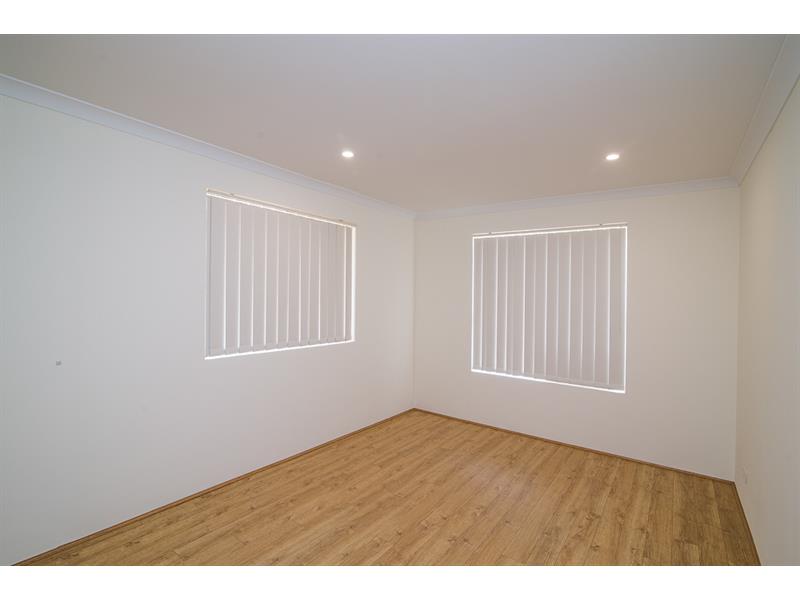 Modern 3 bedroom, 2 bathroom front strata home overlooking parkland is now available for lease. This home is oozing with quality fixtures and fittings throughout and is ideally located close to Cockburn Central and the new Fiona Stanley Hospital. *Massive master bedroom with 4 door sliding wardrobe which includes built-in draws and shelves. *Huge Ensuite with quality tap ware and china basin. *Bed 2 and 3 both have built-in robes with draws and shelves. *Main bathroom has a large shower also has quality tapware and china basin. *Open plan kitchen, meals and family area is combined. Family area has a gas point and a TV point. *Stunning modern kitchen with caesar stone bench tops, stainless steel gas hot plate, electric oven, double sink, range hood and over head modern remote controlled ceiling fan. *Split system air conditioning units located in the Family room and the Master bedroom. *Laundry with built in linen cupboard. *Separate secure lockable store room. *Available now. Pets considered, except dogs! PHOTOS TAKEN WHEN PROPERTY WAS BRAND NEW IN 2015. DISCLAIMER: Whilst every care has been taken with the preparation of the particulars contained in the information supplied, believed to be correct, neither the Agent nor the client nor servants of both, guarantee their accuracy. Interested persons are advised to make their own enquiries & satisfy themselves in all aspects. The particulars contained are not intended to form part of any contract.