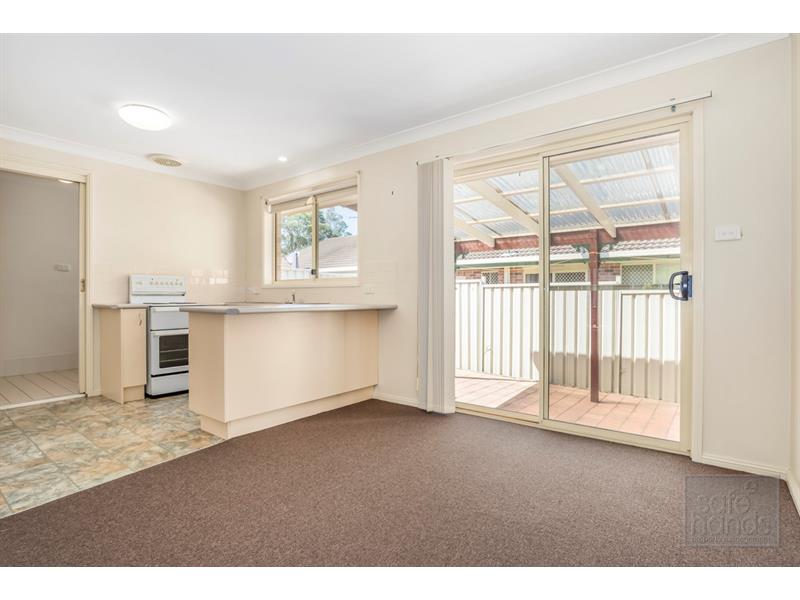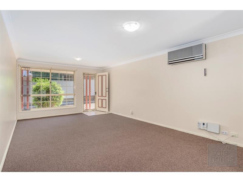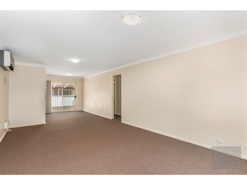 Lovely modern villa only a short walk from Warabrook Woolworths and shopping center. With new carpet throughout this spacious villa comprises an extra large large lounge room. The modern laminate kitchen has electric cooking and a breakfast bar to the dining room. Sliding doors in the dining room lead to the large rear courtyard which features a full length covered pergola. There are two double bedrooms which both have built-in robes and ceiling fans. There is a full bathroom with a separate shower and bath. Single garage with internal access. This is a very quiet complex in a lovely cul-de-sac - Built-ins - Ceiling fans - Pergola - Low Maintenance To inspect, please register on www.safehandspm.com.au Please note that we do not accept 1forms