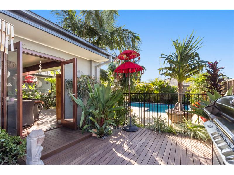 This stunning property features unparalleled living and entertaining spaces in a private Balinese designed setting. - Outdoor entertaining deck with wired Bose speakers, ceiling fan, plus an east facing sun deck with BBQ area - Amazing resort style saltwater pool with water feature and north facing paved sitting areas - Gourmet kitchen with timber island bench-top, Blanco 5 burner gas cook top, dishwasher, double fridge space with plumbing, stone bench top and walk-in pantry - Master bedroom with spacious walk-in robe and ensuite - Huge tiled open plan living area with dedicated lounge and dining spaces, separate front lounge room - Front caravan storage area, lawn locker, 2.5m X 3m back shed, instant gas hot water system, 2KW solar power system, DLUG