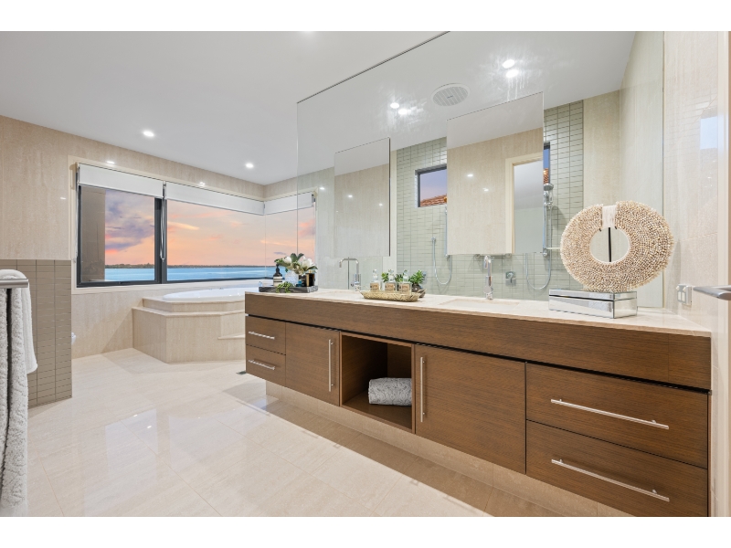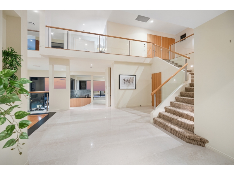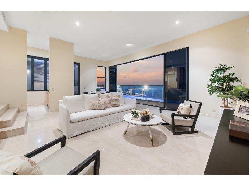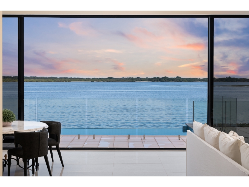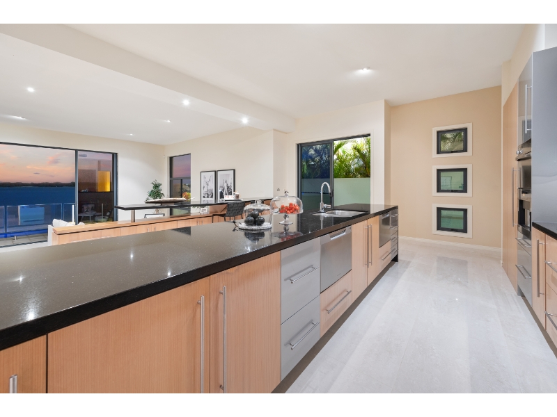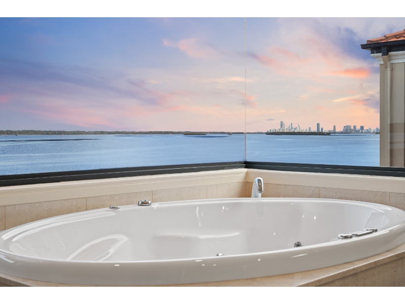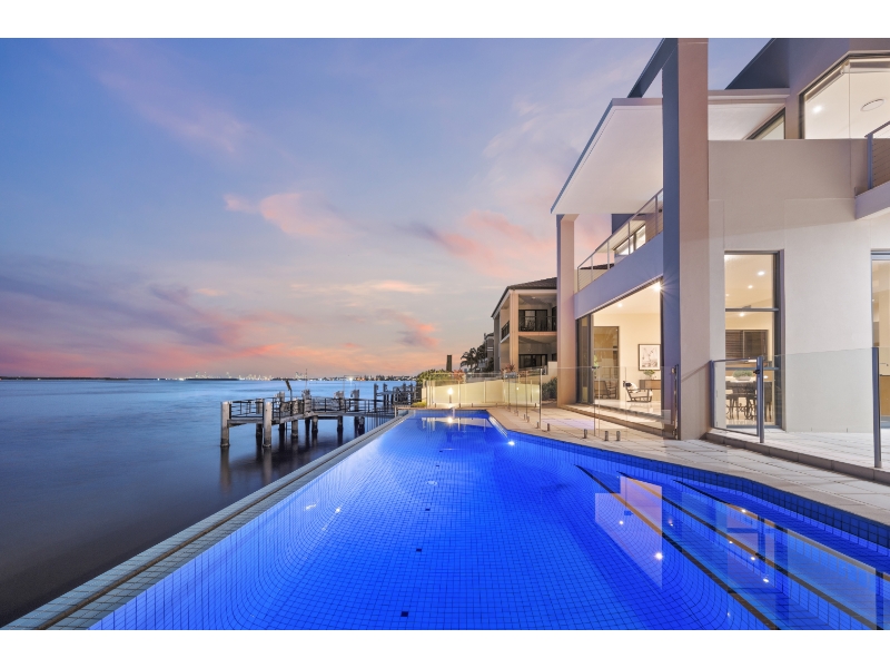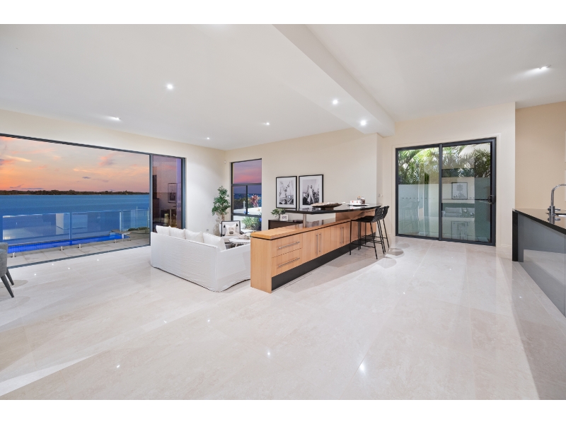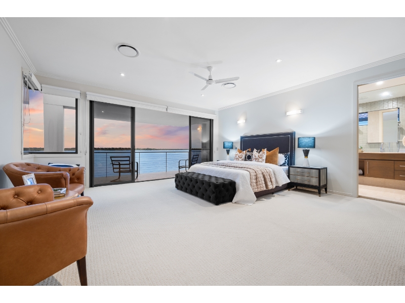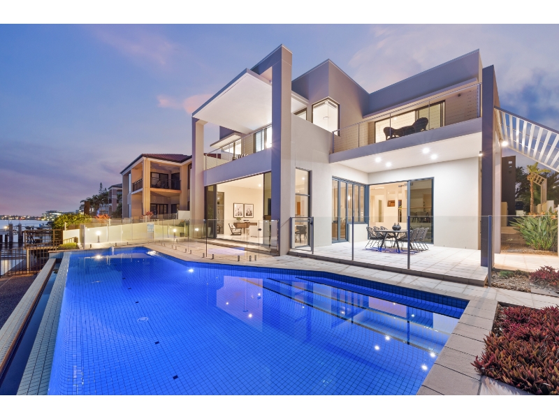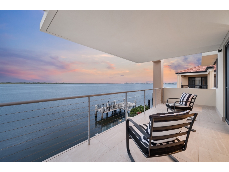 Enjoy living on the very edge of the magical Broadwater where the passing parade of boats and dolphins are an ever changing distraction. With phenomenal. irreplaceable views from numerous vantage points as well as privacy that is second to none, the ultimate waterside lifestyle awaits you here! This residence is architecturally designed and constructed with optimum use of luminosity and infinite views of the ever changing Broadwater. Vaulted ceilings and ultra luxurious 3.3 meter high glass doors further enhance the radiance of pure natural light and bright open spaces. * 4 sumptuous bedrooms; plus 2 separate multipurpose rooms * 4 ensuites & large guest powder room * Superior kitchen with Miele appliances, granite bench tops & walk in pantry * Extensive use of polished vitrified porcelain floor tiles * Formal dining room finished in Tassie oak flooring * Media room with impressive stack stone fire place * 2 separate and spacious lounge/entertaining areas * 2 expansive balconies with never-ending Broadwater Views * Wine cellar with cedar rack shelving and climate control air conditioning * Stacker doors open wide to outdoor entertaining area with wet bar * Horizon wet edge pool * Security system, split cycle ducted air-conditioning For more information or to arrange a private inspection contact Amanda Blake 0422 067 071 or Matthew Crown 0401 315 778. Disclaimer: We have in preparing this information used our best endeavours to ensure that the information contained herein is true and accurate, but accept no responsibility and disclaim all liability in respect of any errors, omissions, inaccuracies or misstatements that may occur. Prospective vendors, purchasers & tenants should make their own enquiries to verify the information contained herein.