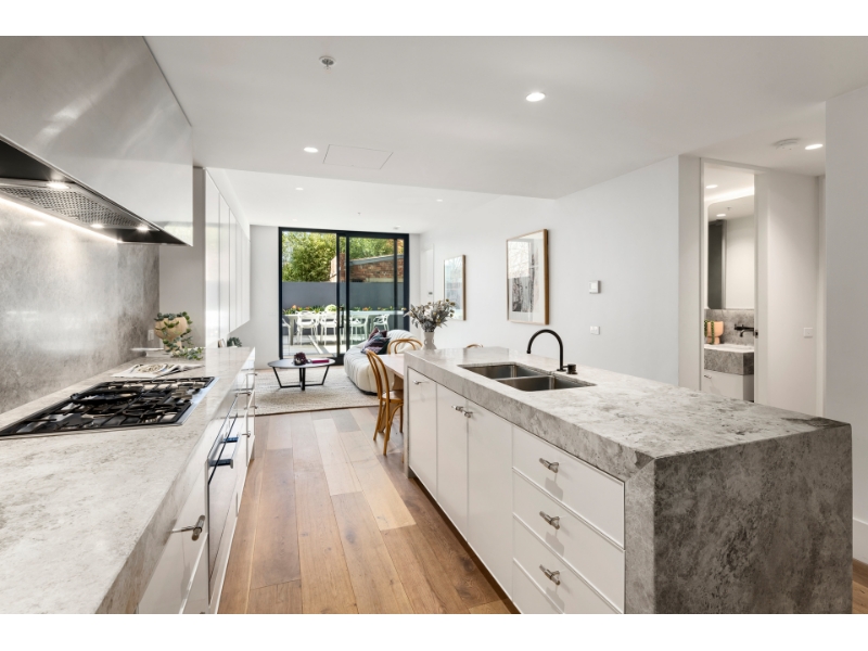 Relish liveable luxury that is both functional and beautiful with this superb rear two bedroom apartment with a spectacular 50sqm (approx.) entertaining courtyard designed by JCB Architecture with Hecker Guthrie interiors and poised in the heart of Prahran East Village. Just four years old, the interior is thoughtfully detailed and beautifully presented with premium finishes including swathes of travertine and bespoke joinery with chic Buster + Punch hardware. Striking architectural lines, floor-to-ceiling double glazed windows, engineered oak flooring and plush carpets ground the apartment in contemporary luxury, while the generous courtyard sizing is a standout feature and rare for an apartment of this size. The glamourous kitchen is designed as both a high performance work space and a place of beauty. Stone surfaces are visually stunning and tactile including the marble finished island with waterfall edge, while a suite of Miele appliances including an integrated dishwasher, gas 5 burner cooktop and extra wide oven complement outstanding storage including a butler's pantry with European laundry. Beautiful joinery offering exceptional storage highlight's the light-filled living space with floor-to-ceiling sliding doors overlooking and opening to the show stopping bluestone paved entertaining terrace. Harnessing natural light from morning to afternoon, the north-east courtyard is shielded in greenery in warmer months perfect for spring and summer entertainment and offers a magnificent space to host guests in style while providing wonderful interaction with the interior. The main bedroom is privately zoned and enjoys a light-filled study area, oversized fitted dressing room and luxurious travertine ensuite of superb proportions complete with freestanding bath, quality finishes and excellent storage. The second double bedroom with courtyard aspects features built-in robes and is serviced by a sublime central bathroom with a large shower. Impeccably detailed, appointments include ducted heating and air conditioning, TWO CAR STACKERS CAR SPACES and a storage cage. Minutes to popular Lune Croissants, Beyond Organic Wholefoods, homeware stores and Hawksburn Village, the apartment also enjoys proximity to three tram lines (one at the doorstep) and excellent walkability to Hawksburn and Toorak stations. Pick a direction and you can explore Victoria Gardens, the Chapel Street precinct, restaurants and High Street and Glenferrie Road's retail stores. PLEASE NOTE: The rent will increase to $830 per week / $3607 per month for the property in February. Arranging an inspection is easy! Where there are no set advertised inspections, click on "Book Inspection" and select your preferred time. Please ensure that you register for all inspections. If you do not register, the inspection may not be confirmed. By registering you will be automatically advised of any changes, updates, cancellations or future inspections.