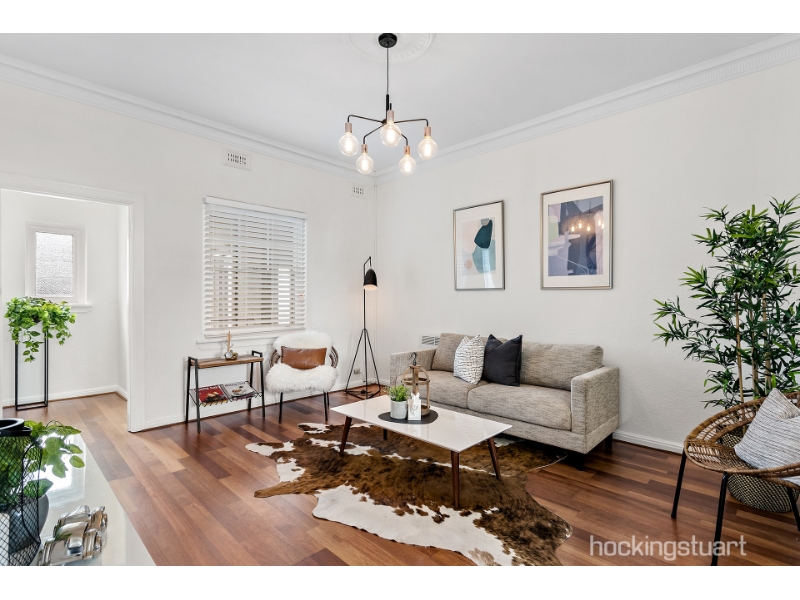 APPLICATION APPROVED From the moment you lay eyes on this solid brick, stucco, Deco building you are assured of a classic, beautifully crafted home. Located at the Richmond end of fabulous Hawthorn, this first level gem has been stylishly decorated and updated. The 30s journey begins with striking Stucco external walls and arched exterior windows. This is then complemented by the textured internal plastered walls and the polished timber floors throughout and of course the elaborate 10 foot ceilings. Set at the rear of the building and delivering both North and South facing windows and front and rear access. This home presents with a main and second bedroom with built-in robes, a cosy open kitchen, meals and lounge room, with a split system plus a classic 30s bathroom in excellent condition, which includes laundry taps. Further features include a single lock-up garage. This fabulous abode is just a short tram ride to the city, is situated near Bridge, Glenferrie and Burwood roads, Kew Junction, train station, Swinburne University... just a stone throw away, suffice to say the property is central to everything.