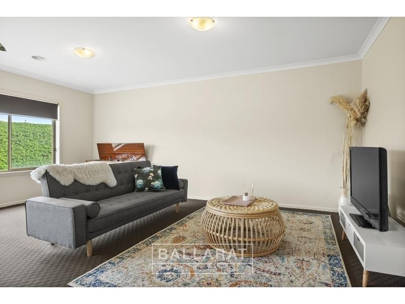 BOOK YOUR INSPECTION ONLINE 24/7 Click "Book an Inspection Time" to select a time that is suitable for you. Alternatively, go to our website ballaratrealestate.com.au and press the BOOK INSPECTION button to register for a time that suits you. This four bedroom, three living area home is ideally positioned in a quiet court in highly sought after Alfredton. Upon entering the home you will find 3 separate living areas, an open plan kitchen and meals area with sliding doors to the undercover alfresco. The four bedrooms are all of good size, with the master featuring an ensuite and walk in robe and built in robes to the remaining bedrooms. The central bathroom has a bath, shower, vanity and separate toilet. Additional benefits of the home include central heating, split system cooling, walk in pantry, walk in linen cupboard, double lock up garage and a low maintenance fully enclosed private rear yard.