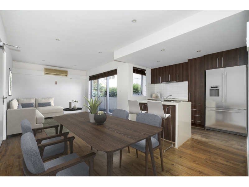 This ground floor, one bedroom apartment is located in one of St Kilda's quieter streets. With a leafy streetscape outlook it comprises all of the modern features and is complimented by a modern kitchen with stainless steel appliances, stone bench tops and dishwasher. An open plan living area with courtyard allows for easy entertaining and timber floors provide a perfect finish. Features include: Security entrance with video intercom, generous bedroom with built in robes, good size bathroom with Euro laundry, split system, secure car parking & storage cage. Situated conveniently close to the hub of vibrant Chapel Street and everything else St Kilda has to offer
