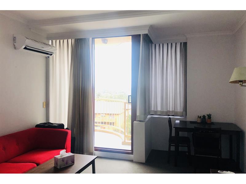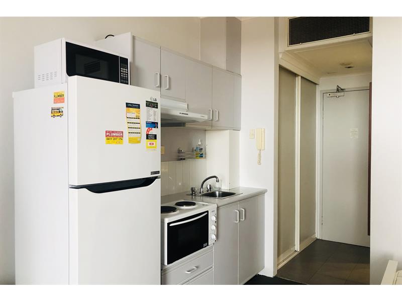 * Furnished Studio apartment in central Parramatta location on the 5th floor * Good size living area * Balcony * Kitchenette includes mini oven cooktop, fridge rangehood * Built-in robe. * Split system air conditioning unit. * Secure undercover car space. * 5 minute walk to Parramatta Westfield shopping, train station major transport interchange.