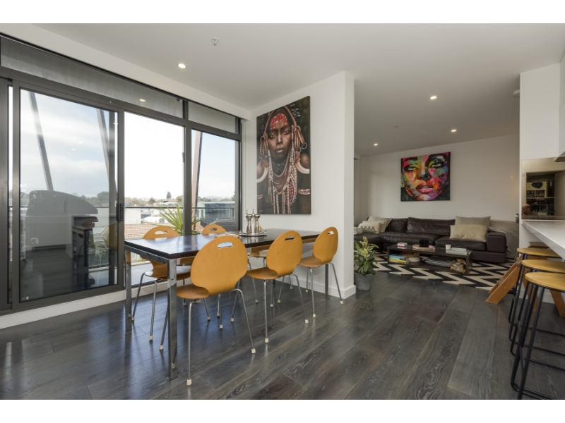 This chic, urban style, north-facing, luxury apartment is ideally situated for the lifestyle you want, with all the conveniences you could wish for, right on your doorstep. Enjoying secure lift access from a spectacular foyer to the second floor, this superb apartment presents an ideal lifestyle opportunity. Coffee-toned engineered oak floors flow throughout the open plan living, dining & kitchen zone to a sunny balcony with leafy outlook. A beautifully appointed kitchen features stone benchtops, mirrored splashbacks, stainless steel Ilve appliances (including dishwasher) integrated Fisher & Paykel fridge/freezer, soft-close cabinetry & breakfast bar. Also featuring two light filled bedrooms with mirrored built-in robes (main ensuite) and a deluxe central bathroom. Other features include additional powder room, video intercom entry, heating/cooling, euro laundry, stunning communal courtyard & basement parking for two cars with storage cage positioned next to the lifts. Easy access to local cafes, restaurants & public transport.