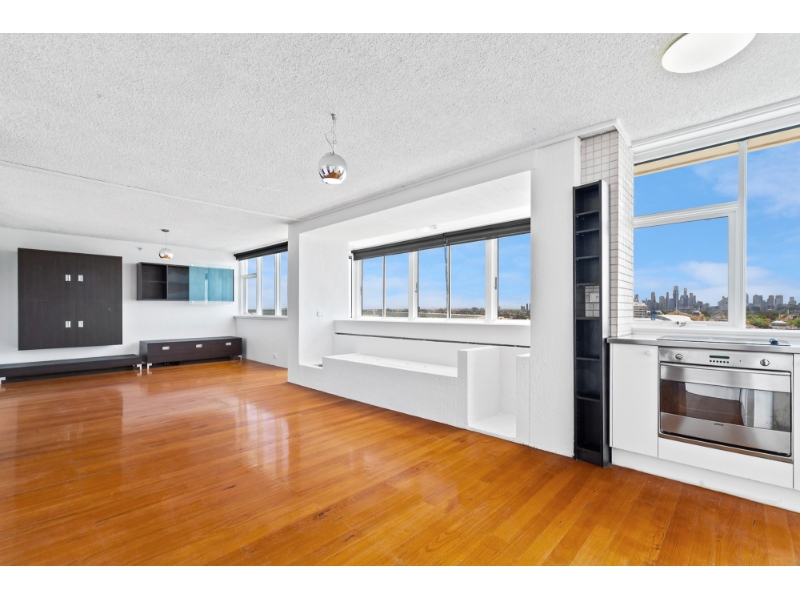 PLEASE NOTE THAT THIS PROPERTY IS OFFERED UNFURNISHED A first-class lifestyle opportunity, this 11th floor apartment makes a perfect choice with its spacious design, quality inclusions and picture-perfect panorama. Modern interior comprises two bedrooms (both with BIRs) study nook and modern central bathroom complete with bath. Add to this a open lounge/dining area contemporary adjoining kitchen featuring stainless steel cooking appliances, dishwasher and ample cupboard space. Other highlights include access to the 360 view rooftop entertaining deck with bbq facilities, intercom, AC heating/cooling and solid timber floors and communal coin operated laundry facilities plus one off-street car space. Positioned to perfection, it’s walking distance to cafes, shops, restaurants, public transport and the bay, this property is not to be missed! Welcome home!