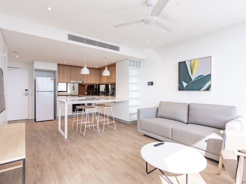 Designed to make the most of life 24 hours a day, located within the heart of Robina where an abundance of amenity creates the perfect place to live, work and play. Lucia House offers a unique hotel-inspired lifestyle including a pool, gym, sun terrace, outdoor dining and a business lounge. Perfectly positioned within walking distance to the train station, hospital, bond university, Robina town centre and parklands. Pellicano Living Members will also enjoy access to onsite concierge style services, 7 days per week. Services ranges from apartment cleaning, dry cleaning and laundry services, parcel and mail management, pet grooming, in-room dining and business services. Wake up and expect the best it’s all here. Apartment Inclusions: • Gourmet style kitchen with stainless steel appliances, mirrored splashback, integrated dishwasher and feature lighting • Coastal inspired colour scheme throughout • Timber style tile to living & carpet to bedrooms • Reverse cycle ducted air-conditioning to living & bedrooms + ceiling fan to bedrooms • Floor to ceiling doors and windows • Generously sized bedrooms, master with walk-in wardrobe and private ensuite • Luxurious curtains throughout • European style laundry • Secure basement car parking • Full security building with swipe access only to all entry and lifts Furniture Inclusions: • Bedroom 1: 32” Smart LED TV, queen bed setting with bed side tables, lamp and artwork • Bedrooms 2: Queen bed setting with bed side tables, lamp and artwork • Living: 43” Smart LED TV, sofa, coffee table, entertainment unit, armchair and artwork • Dining: 350L refrigerator, microwave, bar stools • Balcony: Outdoor table with chairs • 4.5kg dryer & 7kg front load washing machine Contact us today to arrange an inspection. Pets may be considered upon application. *Please note that the photography used is for marketing purposes only and the actual apartment may vary