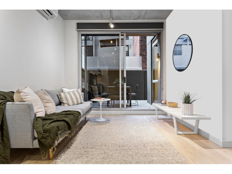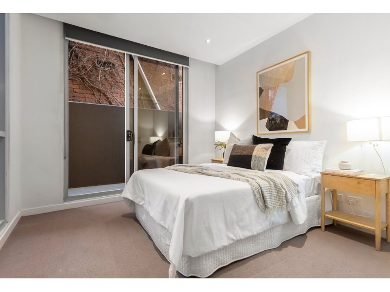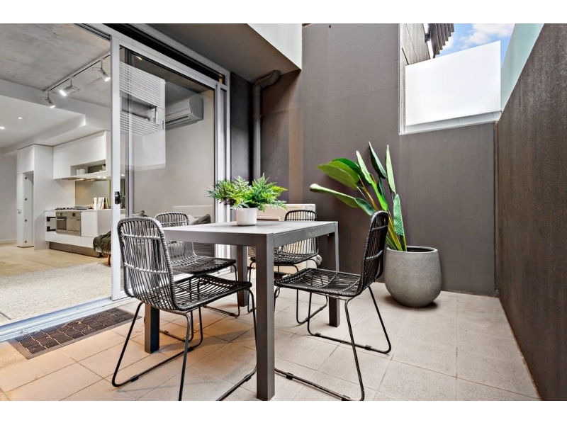 Effortless elegance and convenience completely in sync with a busy modern lifestyle. • Façade designed by renowned Melbourne band poster artist Ken Taylor (Rolling Stones/Pearl Jam/Bob Dylan) • Fluid floorplan showcasing quality timber floors and high attention to detail • Light filled living domain anchored by state of the art kitchen – boasting Bosch S/S appliances and stone benchtops • Living and dining embracing a fluid transition to outdoor entertainer’s terrace • Two generous bedrooms carpeted for comfort and equipped with built-in robes • Serviced by a sleek central bathroom with laundry facilities • Reverse cycle heating and cooling for year-round comfort • Secure video intercom • Secure car space on title, bicycle parking, and storage Located in the heart of Prahran, less than a 2-minute walk to its world famous shopping strip, iconic Chapel and Greville Street filled with local supermarkets, cafes and over 5 kilometres of shops. All transport and the CBD close by, plus unparalleled nightlife and socialisation options with outstanding bars and restaurants just a short stroll away.