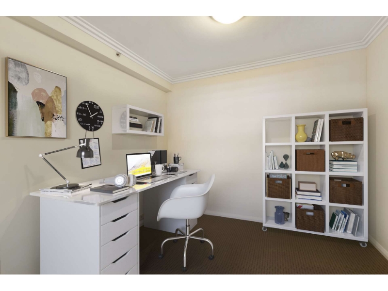 Modern one bedroom apartment with large study / second bedroom. Ideally situated above St Leonards Station and walking distance to bus stops. The Forum building is located within close proximity to Royal North Shore Hospital, Crows Nest shopping, cafes and restaurants, and the CBD. * Kitchen with stainless steel appliances and dishwasher * Living with spilt system air-conditioning leading onto balcony * Good size bedroom with built in wardrobes * Separate study / second room with door * Internal laundry * Secure single parking * Building offers Concierge service * Resort-style facilities includes indoor pool, spa and gym