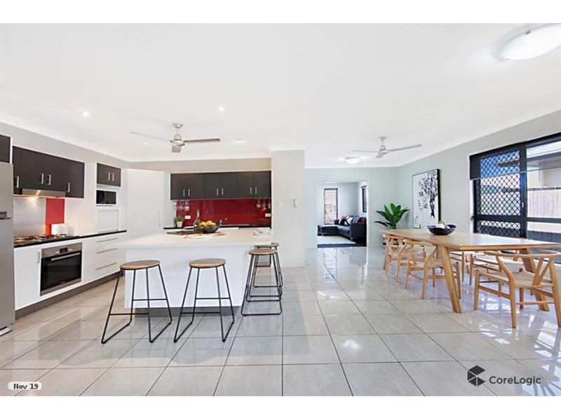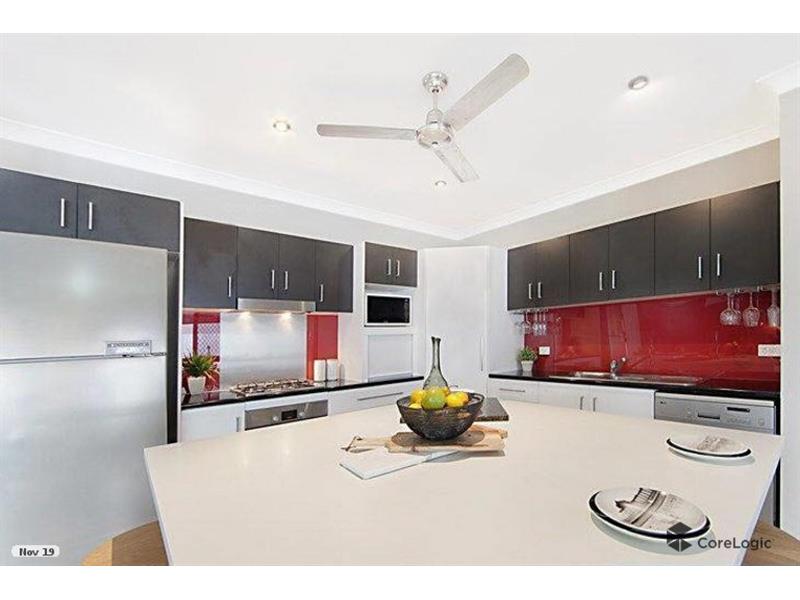 Situated on a 544sqm block in the forever popular suburb of Idalia sits this amazing four bedroom home that is a stones throw to the serene Lake and adjoining parklands plus all that Fairfield Central has to offer. This stunning two storey property will impress from the moment you enter with an abundance of natural light that brings to life this entertains delight. The lower level consists of the grand entry through to the base of the hardwood timber stairwell which opens out into the main entertaining spaces of the home. The theatre room adjoins out to the dining which connects seamlessly to the kitchen, family living and bar area. The kitchen is of high quality with stunning caesarstone benches and the main focal point being the central island bench which offers a more casual dining place for the family. The kitchen has been designed with a classic crisp white, modern charcoals and splashes of rich red. The stainless steel appliances are all Bosch with gas cook top and fan forced wall oven. Following on from the kitchen is a bar area designed to flow through with matching cabinetry making this home a real entertainers paradise. Also, on this level are two of the bedrooms complete with built in robes and are accommodated by the main bathroom, plus there is a separate toilet and laundry. Following the timber stairwell up to the Master retreat and fourth bedroom, you will pass a study nook with plenty of room for the homework space. The Main bedroom is impressive with en-suite, walk in robe and offers a small balcony just perfect for the morning paper and cuppa whilst taking in the views of the majestic mountain ranges of Mount Stuart in the distance. There is a great resort style pool complete with rock waterfall and is surrounded by lush tropical inspired gardens. Perfect for the growing family, this home offers the space you are most likely looking for.