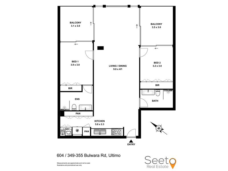 Experience luxury city living in this newly renovated, sun-filled apartment in the heart of Sydney. Situated between the CBD, Chinatown, and Pyrmont, the Trieste Sydney offers the perfect blend of luxury, style, and convenience. Spanning approximately 99 square meters, this apartment features spacious living areas with high ceilings and two balconies offering breathtaking views of the CBD. The chef's dream gas kitchen is equipped with top-of-the-line De'Longhi stainless steel appliances, a dishwasher, and ample pantry space. Both bedrooms have direct balcony access and built-in wardrobes, with the master bedroom boasting a deluxe ensuite. Additional highlights include contemporary designer bathrooms, centralized air conditioning, secure intercom access, an onsite Building Manager, and dedicated parking with lift access. Nearby amenities include Paddy's Markets, Pyrmont Fish Markets, and Broadway Shopping Centre. Indulge your taste buds at Ultimo Kitchen, a renowned Chinese restaurant just a minute away, or explore Malaysian cuisine at the highly acclaimed Kopitiam Cafe. For a vibrant Thai dining experience, head to Red Lemon Thai restaurant, all within a three-minute walk. Key Features: - Spacious living rooms with high ceilings - Newly installed Hybrid Flooring and Fresh Coat of Paint - Sweeping city views with CentrePoint Tower in sight - Gourmet gas kitchen with stone benches and Italian appliances - Master bedroom with ensuite - Modern designer bathrooms - Convenient internal laundry - Bedrooms with built-in wardrobes - Centralized air conditioning, intercom, and secured car space with lift access - Dedicated onsite Building Manager * All images, floor plans, and text are for illustration purposes only. All properties are for lease under vacant possession. Images may be taken some time ago and you should rely on your own inspection. All measurements are approximate only. All parties should make and rely upon their own inquiries to determine the accuracy. Seeto Real Estate bears no liability for any loss sustained due to inaccuracy or omission.*
