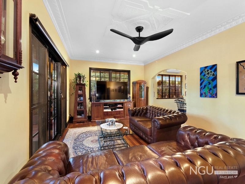 This home has been renovated and built in underneath, with the addition of a fourth bedroom, second bathroom, a laundry and two storage rooms plus an awesome wine cellar! Most recently, the owners have added and extended to develop a fully self-contained and air conditioned granny flat/teenagers retreat/guest house that offers a fifth bedroom, second laundry and third bathroom to the home. An oversized and super impressive 12 metre x 5.5 metre alfresco deck area with an adjoining Bali Hut join the main house to the guest house and both enjoy incredible breezes and majestic views over iconic Limestone Park. It is this combination of the best of all things old and new that make this architecturally inspired executive family home a true Ipswich Icon! This breathtakingly beautiful period home is positioned amongst some of Ipswichs' most exclusive and expensive homes and boasts the same locale and proximity to Ipswich public and private schools and hospitals, the University as well as the Ipswich CBD, shops, electric train and sporting/recreation facilities. You also have easy highway access to Brisbane via the Cunningham Highway or train transport via the Ipswich or East Ipswich Train Stations. The home is perfectly positioned on a 759m2 block that offers remote garage parking for two cars via a free standing 6 metre x 6 metre garage. There is also provision for extra parking for other cars or the biggest caravan or boat via the totally level semi-circular stencil concreted driveway accessed off Chermside Road. Disclaimer: NGU Real Estate Ipswich has taken all reasonable steps to ensure that the information in this advertisement is true and correct but accept no responsibility and disclaim all liability in respect to any errors, omissions, inaccuracies or misstatements contained. Prospective tenants should make their own inquiries to verify the information contained in this advertisement.