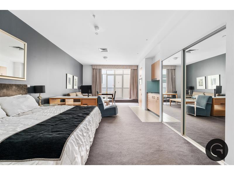 Be welcomed into this modern, spacious apartment which has wonderful amenities including central heating and cooling, secure building access and residents only gym access. You will love that this apartment is fully self contained. The spacious bathroom consists of a shower/bath, beautifully marbled bench-tops and a washing machine for all laundry needs. Adding to the appeal is the kitchen, complete with utensils and cooking appliances, including a microwave oven, fridge, dual electric cooktop and more. The apartment is spacious and boasts natural light shining through to the study/living/bedroom area creating a beautiful relaxing environment. Located in the historic 1876 original Bank of Australia, this property is only moments walk, tram or train to some of the best that Melbourne has to offer.