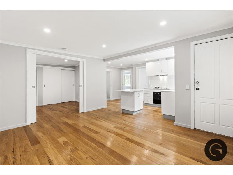 Enter your brand new two bedroom, one bathroom house located in one of Kews most desirable locations. Opening your front door, you are greeted with beautiful timber floorboards throughout and an abundance of natural light. Making your way into your new home, open plan living allows for exceptional entertaining and dining, creating the perfect space to call home. Your modern kitchen is located to your left, fitted with integrated appliances, gas cooking, island bench and an abundance of storage, which flows seamlessly to your light filled living room. Both bedrooms are spacious and complete with built-in robes, which are separated by your modern and spacious central bathroom with a walk in shower. Stepping out to your backyard, you are greeted with a paved outdoor area, allowing you to create a space all to yourself, coupled with your large and tranquil garden. Note: On-Street parking available