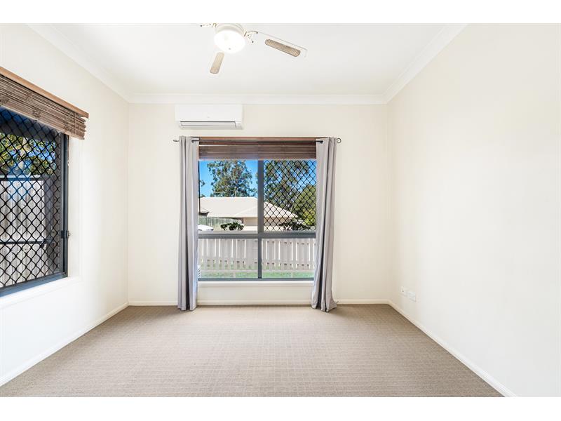 Conveniently located minutes to local schools, shops, parkland and nearby Springfield Train Station. - Four carpeted bedrooms, all with built-in robes and fans - Front master bedroom with ensuite and walk-in robe - Main bathroom with bath, shower, vanity and toilet - Central electric kitchen with island bench and dishwasher - Combined living and dining flows off kitchen to outdoor area - Air conditioning, ceiling fans and security screens installed - Single remote garage with laundry and internal access - Additional side covered parking suitable for trailer - Low maintenance and hassle-free 300sqm block