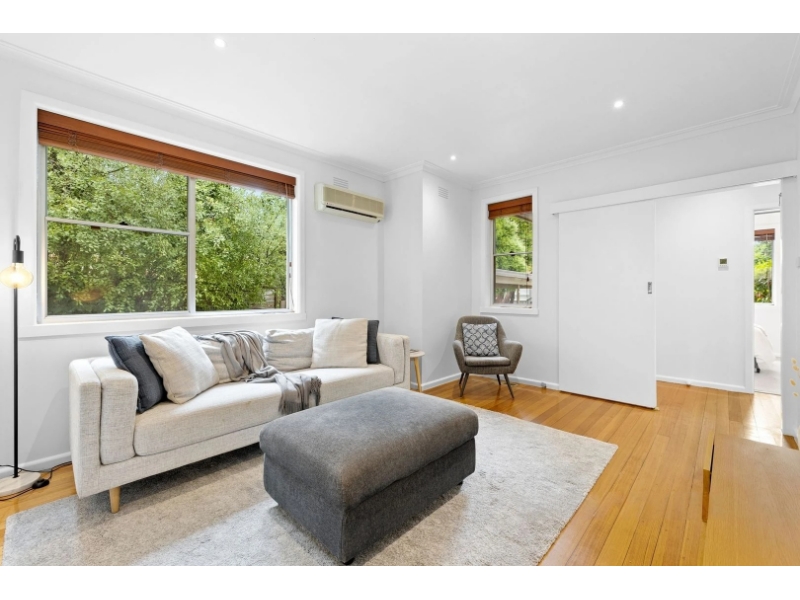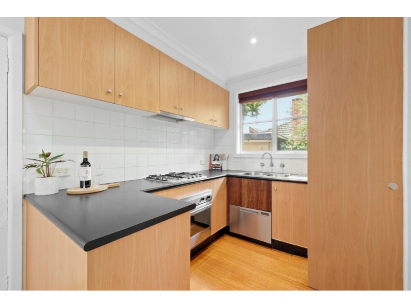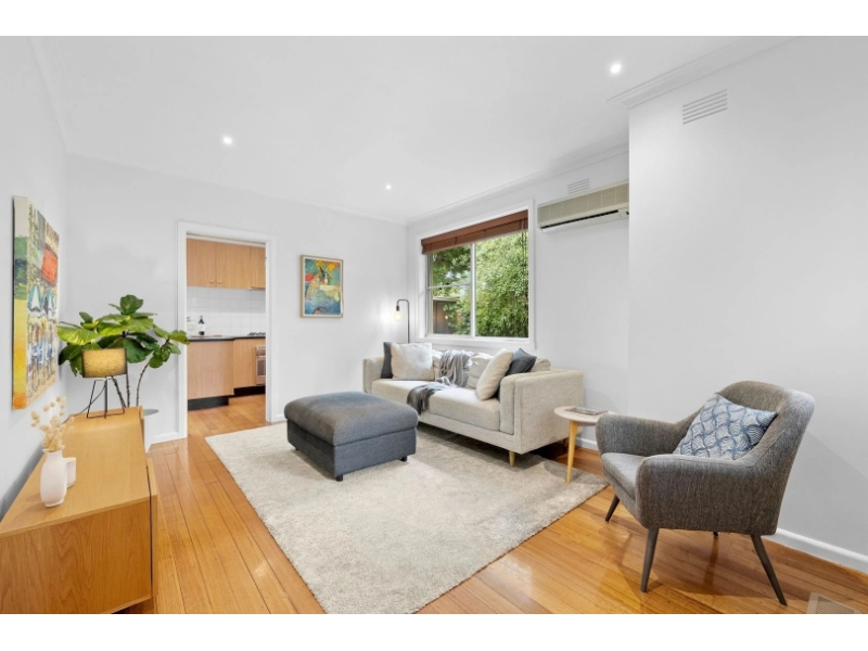 This beautifully presented single-level unit is set in a premium location, offering a leafy outlook, private frontage, and driveway that make it stand out. Perfectly positioned just a short stroll from the peaceful Wattle Park, this home features two spacious, carpeted bedrooms with built-in robes, and is serviced by a sparkling, modern bathroom with laundry facilities. The central living area is filled with natural light and overlooks tranquil garden views, complemented by a study nook and air conditioning to create a comfortable environment. The separate kitchen and dining area is well-appointed for culinary success, while stylish timber flooring throughout the living zones and hallway adds warmth and character. Additional features include ducted heating, split system cooling, a single carport, extra parking in the private driveway, a storage room, and a serene, fully fenced courtyard ideal for outdoor relaxation and entertaining. Located in a peaceful, leafy street close to Wattle Park, this home offers easy access to local cafés, shops, Riversdale Road trams, and Union train station. Additionally, it’s within reach of primary and secondary schools such as Our Lady’s Primary School, Roberts McCubbin Primary, Kingswood College, and Presbyterian Ladies College.