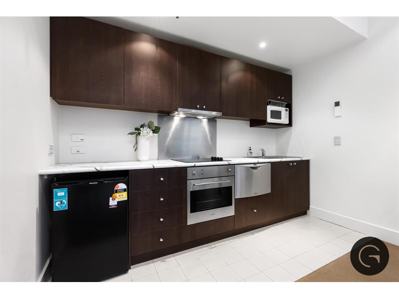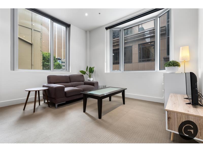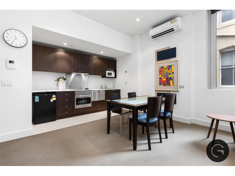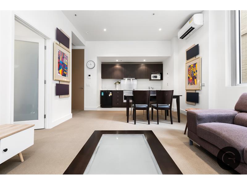 Tucked away behind the hustle and bustle of Melbourne’s CBD, this fully furnished one bedroom apartment offers the perfect location for your new home. Only a short walking distance to Melbourne’s finest restaurants, cafes and shops, this property is in an enviable location. As you step into the property, you are greeted with beautiful natural light entering through the large panelled windows, plush carpet underfoot and newly painted walls. Your modern kitchen with integrated appliances allows for space and storage whilst you cook and entertain, which seamlessly flows through to your fully furnished open plan living and dining area. Moving through the property, enter your spacious bedroom which is complete with a queen bed, mirrored wardrobes and ambient lighting. This stylish one bedroom apartment is complete with furnishings shown in photos as well as a split system, secure fob building access, bike storage and a communal laundry located on each floor.
