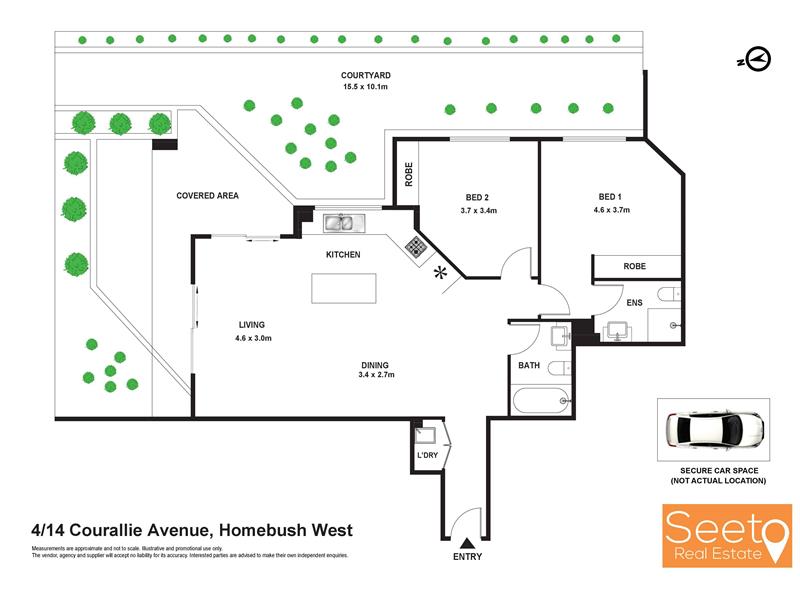 This huge, full-brick, 2 bedroom apartment has been updated with new timber-style flooring, making it bright and contemporary. One of only 16 units, it has easy access for all ages on the ground floor with lift access to a secure car space. Open plan dining and living area that flows onto a versatile, covered courtyard with large garden beds for the green-thumbs and the kitchen that has gas cooking, oven, island bench with breakfast bar, window onto the garden and lots of cupboard space. The generous bedrooms looks onto the garden courtyard and have a built-in wardrobes while the main has an ensuite. The main bathroom has a combined shower bathtub. The location gives you many options for shopping being on the doorstep of Paddy's Markets for fresh produce and within a 10-minute drive, you can choose from The Lidcombe Shopping Centre, Rhodes Shopping Centre, North Strathfield Bakehouse Quarter or Strathfield Plaza. Flemington station is within walking distance. Easy to access Centenary Drive, Parramatta Rd or the M4. The free Strathfield Connector shuttle bus also runs along the street. You'll Love: * Huge 178 sqm on title with full-brick construction * Corner position with north and east aspects * Large covered courtyard plus garden beds * Updated with modern flooring, tiles, fixtures and painting * Generous bedrooms with mirrored built-ins and garden views * Ensuite in main and bathroom with combined bath and shower * Kitchen with gas cooking, s/s oven, island with breakfast bar, window with garden outlook and lots of cupboard space * Intercom & access control, * Secure car space with lift access * Professional garden maintenance service included * Moments to the station, shops, good schools and Rhodes shopping centre * Free Strathfield Connector shuttle stop up the road * 5 minutes drive to Costco, Bunnings and Lidcombe Centre that has Woolworths, Aldi, Kmart and many more shops. *Pets allowed upon application (cats only)* * All images, floor plans, and text are for illustration purposes only. All properties are for lease under vacant possession. Images may be taken some time ago and you should rely on your own inspection. All measurements are approximate only. All parties should make and rely upon their own inquiries to determine the accuracy. Seeto Real Estate bears no liability for any loss sustained due to inaccuracy or omission.*