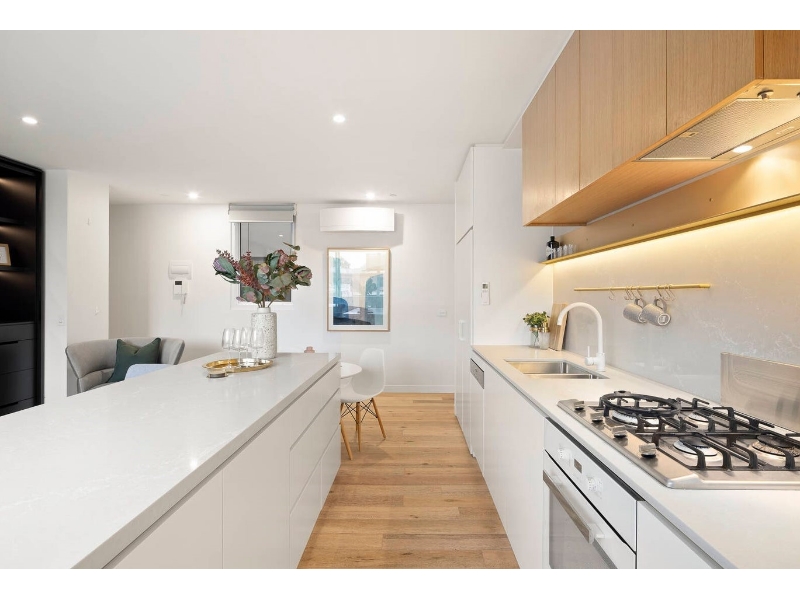 PLEASE NOTE THIS PROPERTY IS UNFURNISHED Situated on the 1st floor of the boutique ‘Lt York’ development is this contemporary two-bedroom two-bathroom apartment with quality finishes, fixtures and fittings. Only a stones’ throw from South Melbourne Market, Clarendon Street restaurants and cafes, Albert Park Lake and transport – offering an envious lifestyle. This residence is all about quality, offering light filled open plan living/dining, quality Miele kitchen with long central island bench, gas cooking, dishwasher and engineered oak flooring throughout. A custom wall unit/storage complements the space whilst large floor to ceiling sliding door opens out to the undercover balcony. Two large bedrooms include extensive built-in robes/storage and each have their own fully tiled, ultra-modern ensuites. Additional features include split system heating/cooling, European laundry with ample storage and trough, modified working from home space, security entrance, video intercom, storage cage and secure undercover parking for one car (stacker - please note weight & height restrictions apply, renter liable to pay any induction fees). Welcome home.