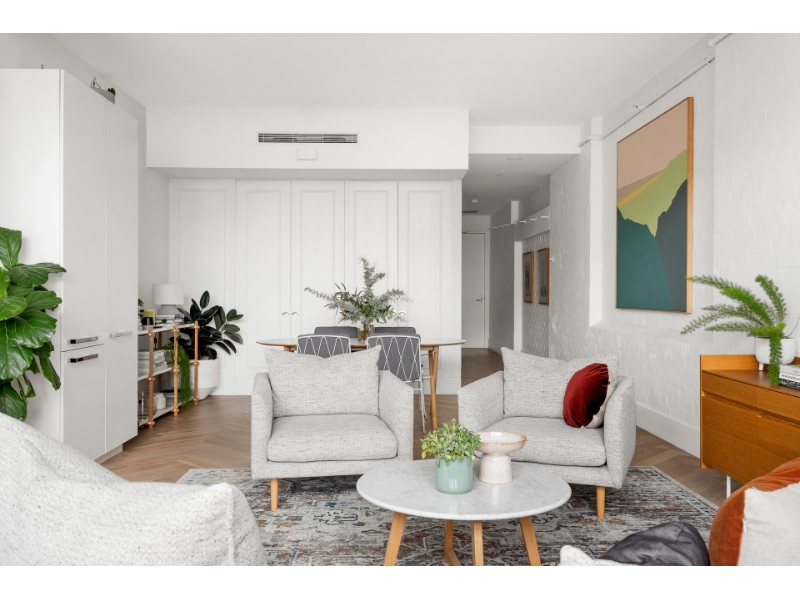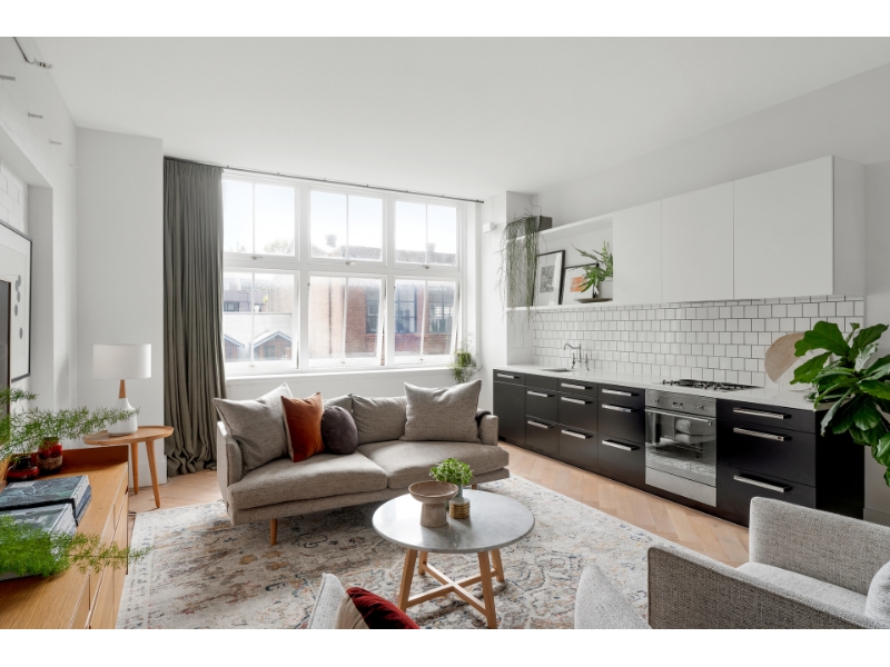Part of the acclaimed 'No.1 Lacey' development by BKH Architects, this sleek one-bedroom apartment presents as a designer haven of space, light and sophisticated style in the heart of Surry Hills. High ceilings, factory windows and white painted brickwork combine with herringbone floors, marble accents and ducted air-conditioning to create a sophisticated executive address befitting its cool urban location. Only a short walk to Central station, Haymarket and the CBD, it balances quality, low maintenance ease and unbeatable convenience for the perfect lock-up-and-go lifestyle. - Entry via Lacey Street - Striking modern design with integrated heritage features - Intercom, chic lobby, lift access and private storage cage - North aspect, generous glazing and streaming natural light - Open living and stone-topped kitchen with Smeg appliances - Quiet private bedroom featuring extensive built-in robes - Luxe bathroom and separate Euro-style laundry - Immersive dining/cafe hub; stroll bus, trains and light rail