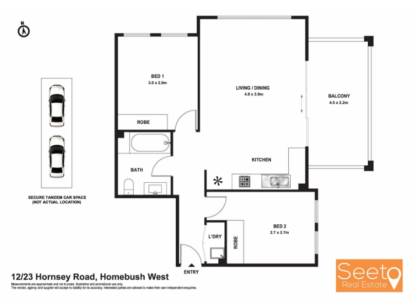 Both bedrooms have built-in wardrobes and the living room and kitchen both look out onto the east-facing, covered balcony which ensures ventilation and the morning sun. The kitchen is equipped with a gas cooktop, oven, and ducted range hood. The bathroom has a combined shower and bathtub and there's an internal laundry. Local amenities make it very family-friendly. Melville Reserve and Airy Park are a block away with a community centre and early childhood learning and Active Kids Early Learning Centre is 2-minute walk around the corner. Homebush West Public School is also just around the corner. You'll love: * Corner position with easterly aspect * Full-brick construction * Bedrooms with built-in wardrobes * Kitchen with gas cooking, oven, ducted range hood * Bathroom with combined shower/bathtub * Internal laundry with the dryer * Air-conditioning * Next to lift with access to 40 sqm, tandem (2) secure car spaces * 6 visitor parking spaces * NBN ready (FTTP), Intercom access * Close to multiple early learning centres * 1 min walk to Homebush West Public School * 4 min walk to Strathfield District Park * 5 min walk to Flemington station, shops and Fleming Markets * 5 minutes drive to Costco, Bunnings and Lidcombe Centre that has Woolworths, Aldi, Kmart and many more shops *Pets allowed upon application* *All images, floor plans, and text are for illustration purposes only. All properties are for lease under vacant possession. Images may be taken some time ago and you should rely on your own inspection. All measurements are approximate only. All parties should make and rely upon their own inquiries to determine the accuracy. Seeto Real Estate bears no liability for any loss sustained due to inaccuracy or omission.*