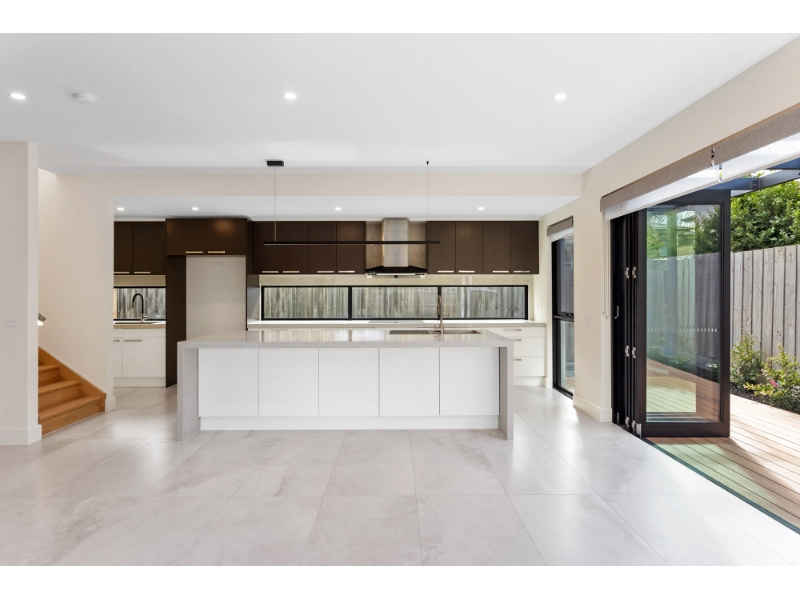Intelligently designed and built to the highest standard, this brand new four bedroom, three bathroom residence offers striking street presence and an equally impressive interior. Ideally located within walking distance to Mentone’s shops, cafés, transport and local amenities, this home delivers premium living in a highly sought-after pocket. Architecturally crafted to maximise natural light, the ground floor features a spacious open-plan living and dining zone that seamlessly opens to a private rear deck via bi-fold doors – perfect for entertaining or relaxed family living. The designer kitchen is equipped with stone benchtops, a benchtop dishwasher, and both gas and induction cooktops, creating a sleek and functional culinary space. Also on the ground floor is a generously sized laundry, a bedroom with built-in robes and its own ensuite, plus a separate guest powder room. Upstairs the master suite boasts a stylish ensuite and generous walk in wardrobe space. Two further bedrooms are serviced by a central bathroom, while an open study area provides the ideal home office or homework zone. The top level offers an open-plan rumpus room with sweeping views across Mentone, making it perfect as a second living area, retreat or entertainment space. Additional features include: Double lock-up garage Hydronic heating and split-system air conditioning throughout Double-glazed windows for comfort and energy efficiency This exceptional home offers space, style and modern convenience in a prime Mentone location – an opportunity not to be missed.