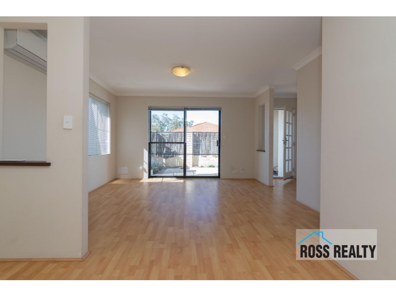 ROSS REALTY proudly present this low maintenance, street front home positioned in the most convenient location, only a short stroll to the Coventry Markets, Morley Galleria & Morley Bus Depot - You couldn't ask for a better spot! Greeted with a private & secure front courtyard, the property flows inside to the spacious open plan area equipped with split system air conditioning keeping you comfortable all year round. The kitchen has a large fridge recess and boasts stainless steel appliances with ample storage & bench space. See all the other features listed below & register your interest today, this one will not last! Property Features: - CCTV - Laminate floors - Front private courtyard - Open plan dining/living with split system a/c - Kitchen with stainless steel appliances - Shopper's entrance - Large master with walk in robe & ensuite - Two spacious minor bedrooms both with built in robes - Main bathroom with bathtub - Separate laundry & toilet - Gas storage hot water system - Single garage with storage space