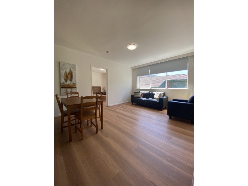 Stylish recently renovated one bedroom apartment in a fantastic location. Comprising of a generous one bedroom with built in robes, kitchen with stainless steel appliances, cooking goods, microwave and fridge. Ensuite bathroom with shower over bath. Some furniture is included, conditions will apply. Other features include floorboards in living areas and bedroom, front loading washing machine , Air conditioner , gas cook top and electric oven, intercom entrance and single carport. Approximately 700m to Box Hill station and Box Hill Central Shopping Centre.